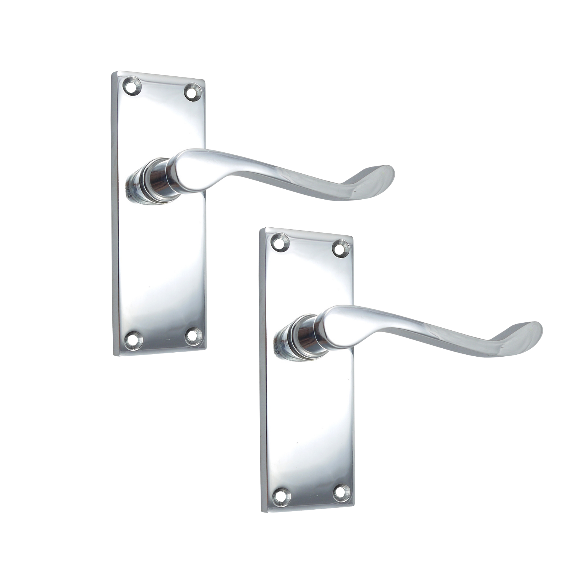 ELEGANT VICTORIAN-STYLE DOOR HANDLES WITH POLISHED CHROME FINISH FOR INTERIOR DOORS Transform your interior doors with these elegant Victorian-style door handles. Featuring a scroll tubular latch design, these handles come with a backplate and a polished chrome finish, adding a touch of sophistication and elegance to any room. Perfect for those looking to enhance their doors with classic charm and modern functionality, these handles suit both traditional and contemporary interiors. COMPLETE INSTALLATION SET WITH NECESSARY COMPONENTS INCLUDED This set is designed for internal wooden doors, and comes as a complete kit with all necessary components, including the spindle, backplate, and fixing screws for a hassle-free installation. The included components make them an excellent choice for DIY enthusiasts and home improvement projects, ensuring you can update your doors quickly and easily. COMFORTABLE T-BAR GRIP WITH SMOOTH OPERATION The T-bar design offers a comfortable grip, allowing for smooth operation and effortless use of your doors. The 112mm (4-inch) size provides ideal proportions for standard interior doors, making these handles a versatile addition to any room. Whether used in the living room, bedroom, or study, these handles combine practicality with aesthetic appeal. CLASSIC VICTORIAN SCROLL DESIGN WITH A MODERN FINISH The Victorian scroll pattern adds timeless beauty to any door, offering a combination of traditional charm and modern performance. The polished chrome finish not only enhances the handles' appearance but also ensures they remain durable and easy to maintain, standing up to everyday use with grace and consistency. BUILT FOR DURABILITY AND CONSISTENT PERFORMANCE Constructed for reliable durability, these handles provide consistent performance throughout their lifespan. Ideal for homes with regular door use, they offer both functional security and elegant style. IDEAL FOR HOME RENOVATION AND IMPROVEMENT PROJECTS Each pack includes a pair of handles, making it easy to create a cohesive look throughout your home. Whether you're renovating or simply replacing outdated hardware, these handles are an excellent choice for your home improvement projects, offering both style and durability.