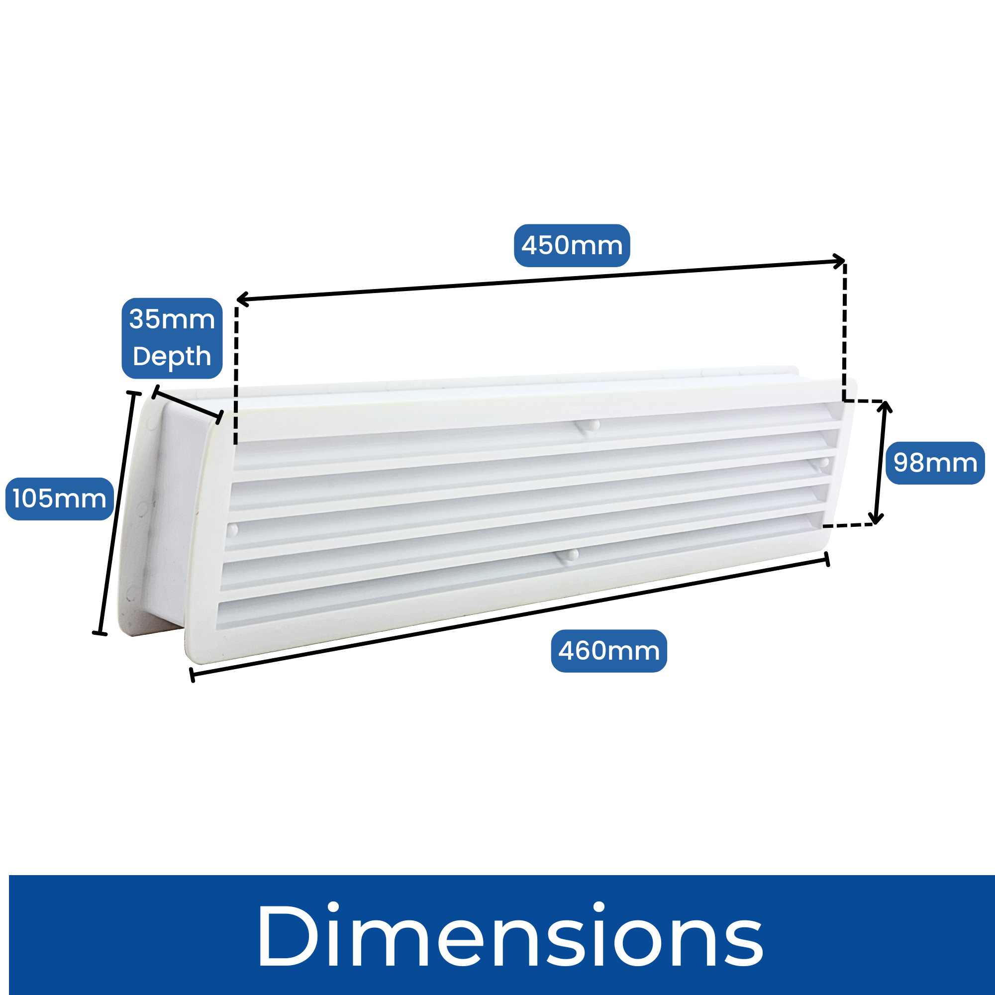 Plastic Louvred Vent - White - 450mm x 98mm