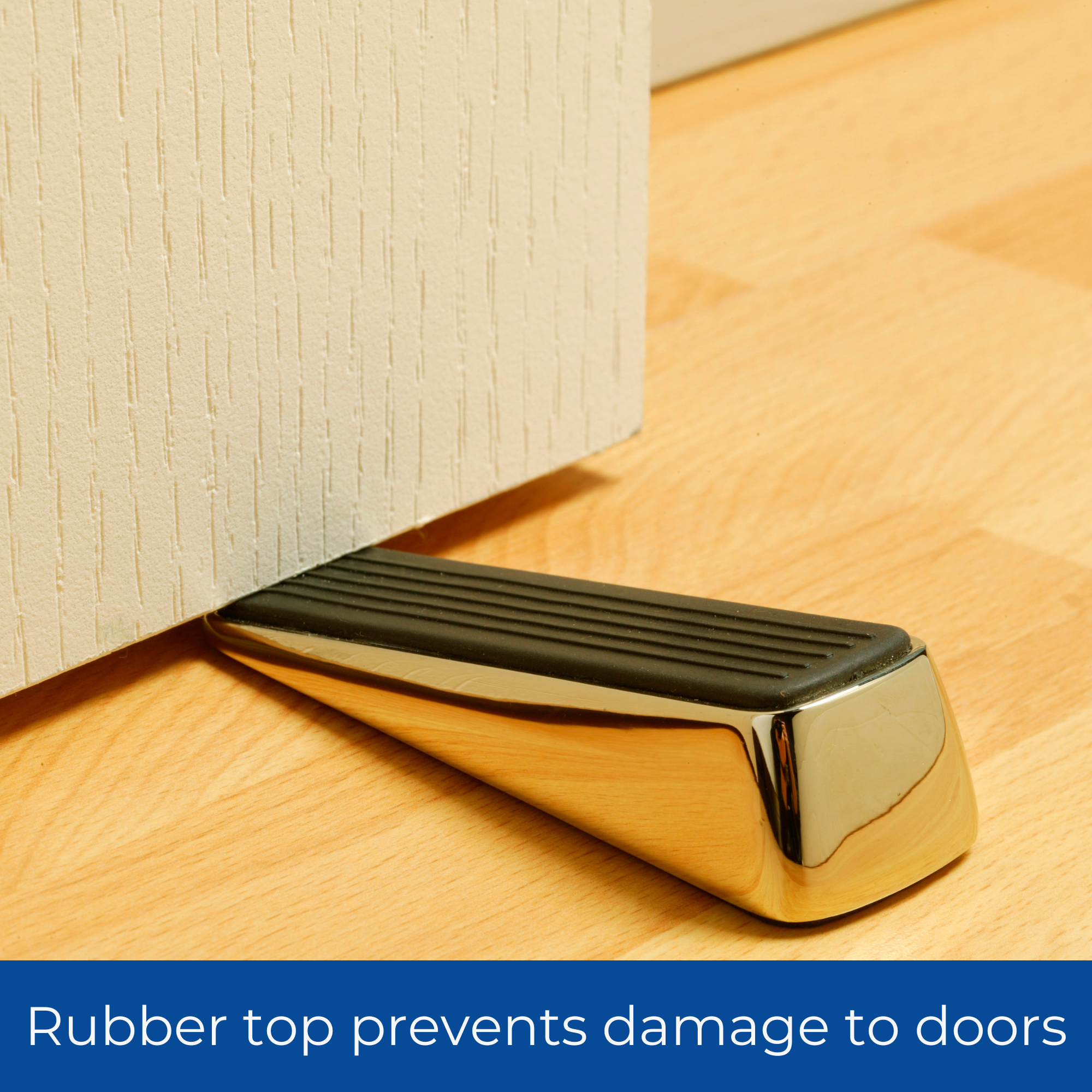 The heavy duty solid rubber sole, the metallic heavy outer casing and raised rubber grooves on top of the door wedge, all help to create that extra secure grip on the door.