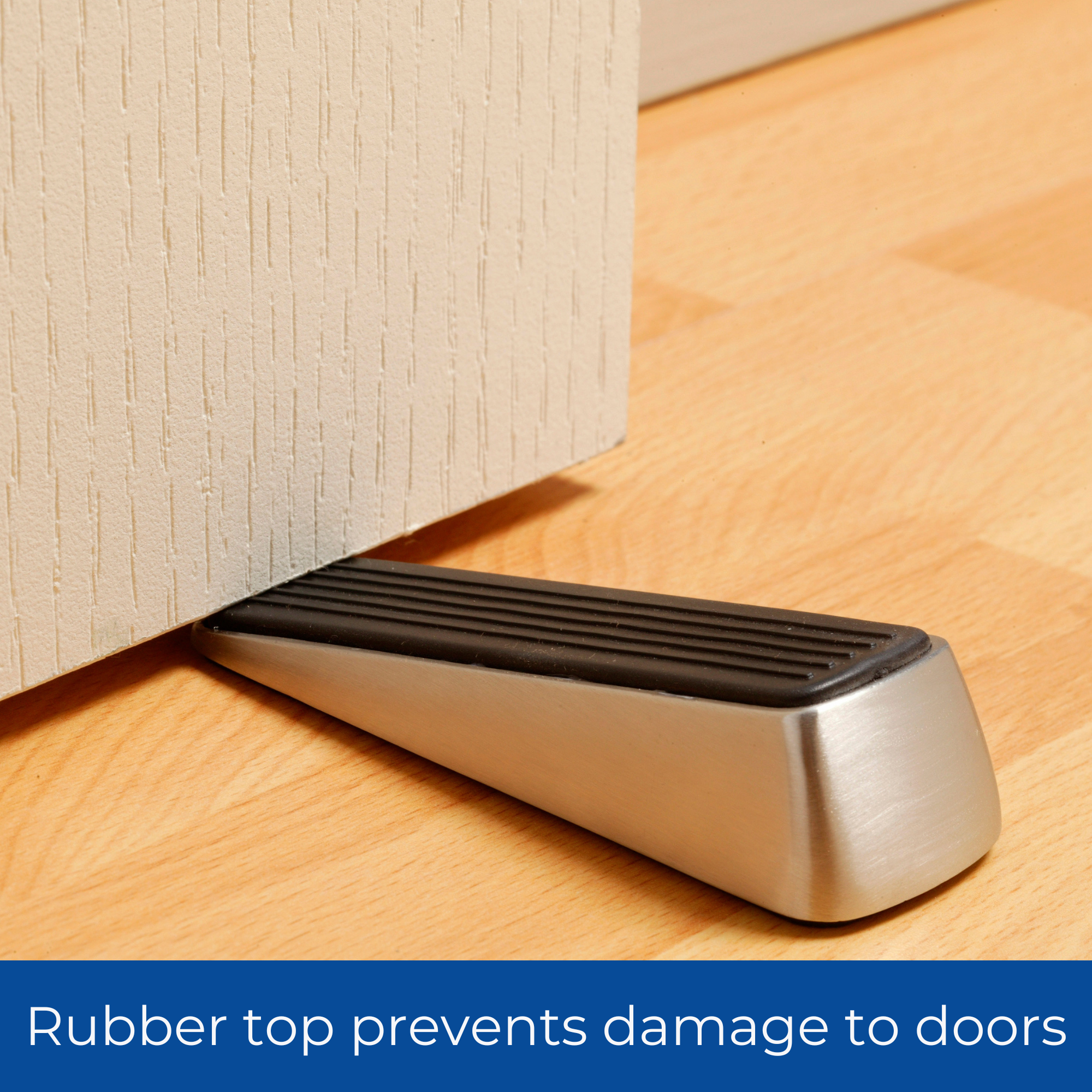 The heavy duty solid rubber sole, the metallic heavy outer casing and raised rubber grooves on top of the door wedge, all help to create that extra secure grip on the door.