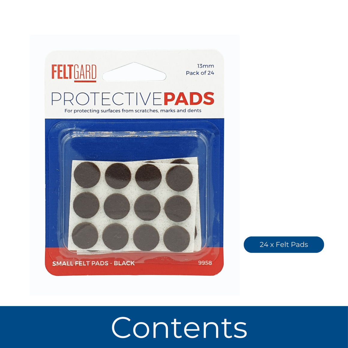 Felt Gard Furniture Round Felt Pads 13mm Black – Pack of 24