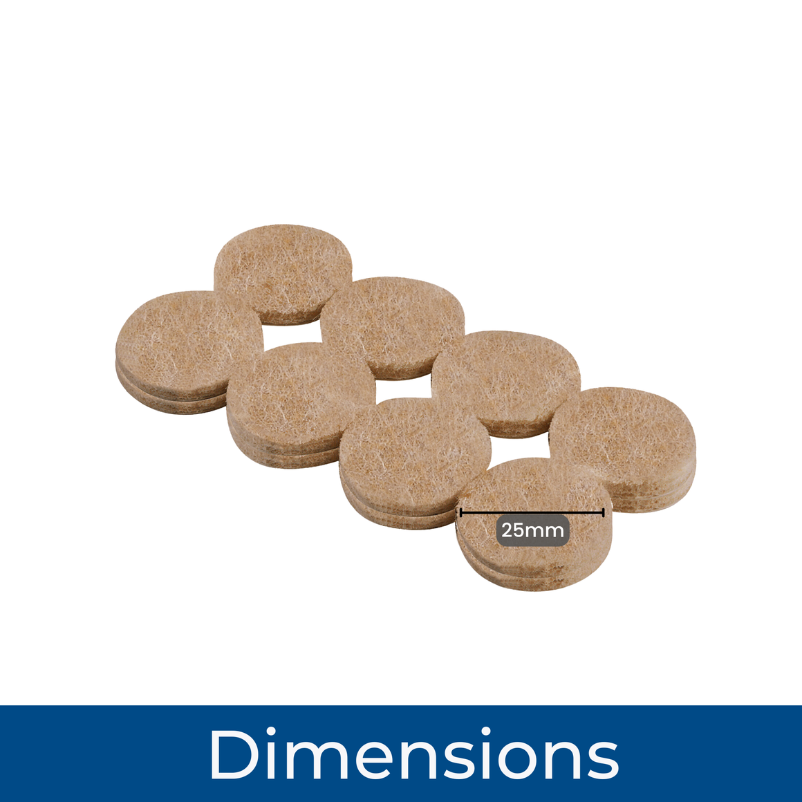 CONTENTS – Pack of 16 x 25mm diameter round heavy-duty self-adhesive felt pads