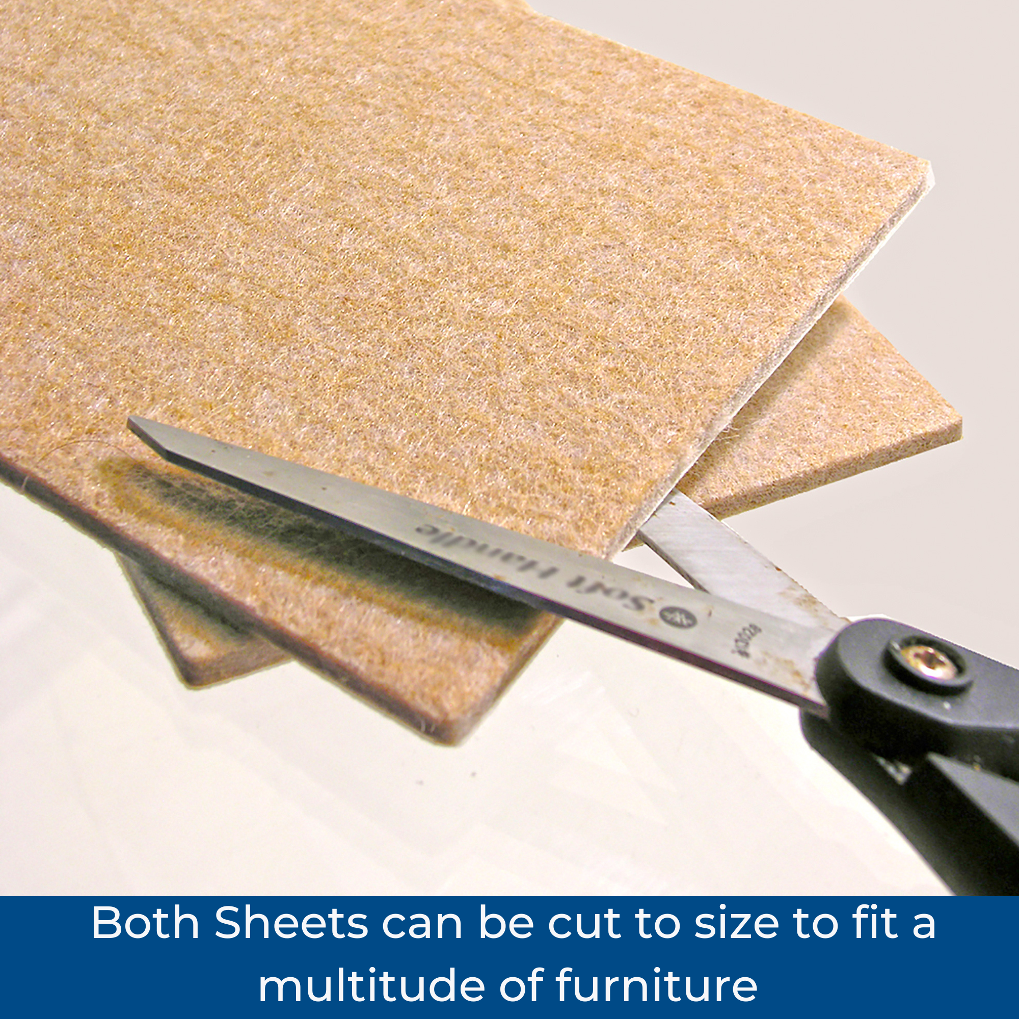 CONTENTS – Pack of 2 x 110x150mm heavy-duty self-adhesive cut to size felt sheets