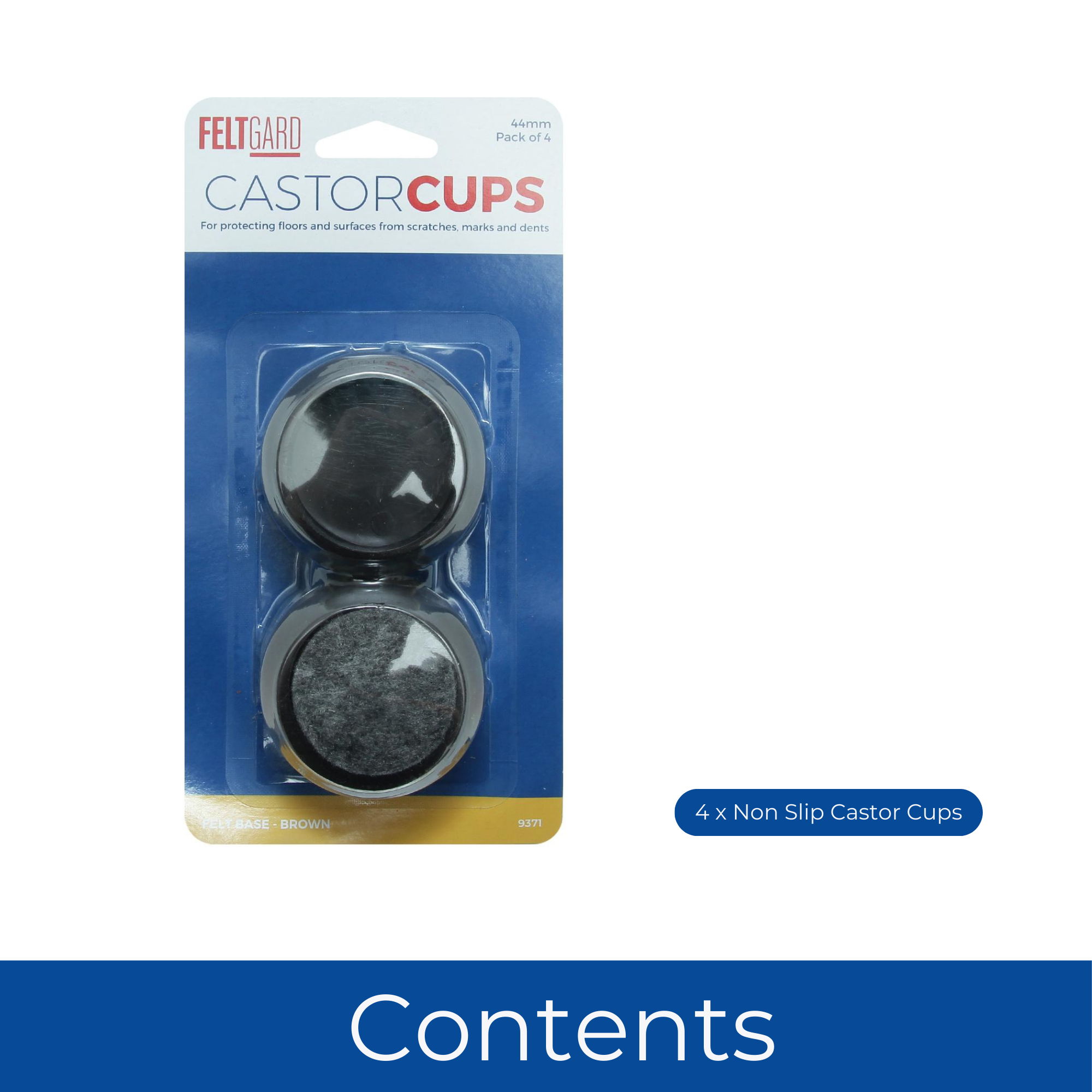 CONTENTS - Includes 4 round 44mm brown castor cups, perfect for both protecting floors and complementing your furniture.
