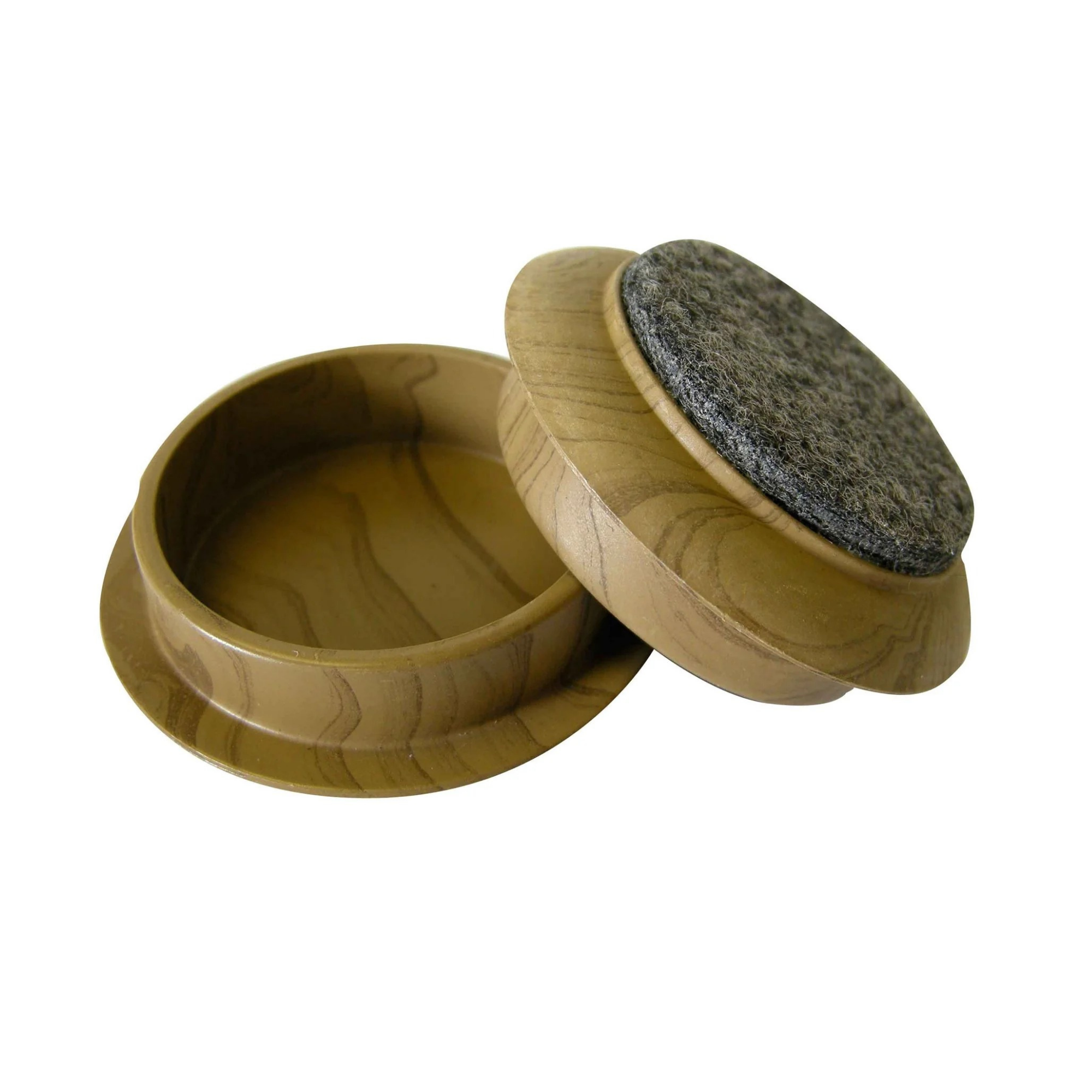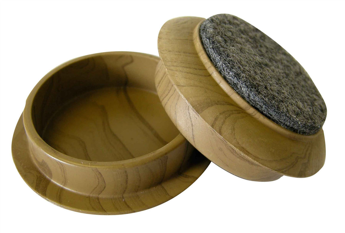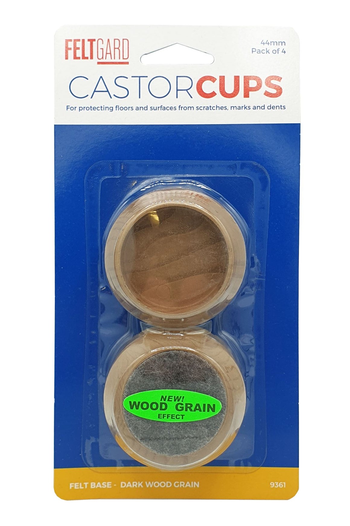 Furniture Castor Cups 44mm Felt Base Dark Wood Grain