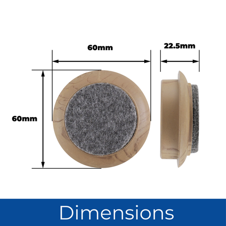 Protect your floors from scratches with these 44mm round castor cups in a stylish dark wood grain finish. The felt base ensures smooth gliding and grip, making them perfect for chairs, sofas, and tables on laminate or hardwood floors, preventing damage from everyday use.