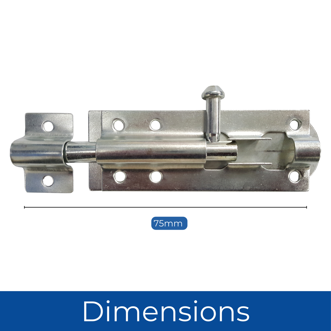 DIMENSIONS - Heavy-duty tower bolt measures 75mm (3 inches) in length, offering robust security for gates, doors, and sheds. Its compact size provides a strong, reliable fastening solution, ensuring long-lasting security for various outdoor and indoor applications. Perfect for securing structures that require durable and dependable locking.