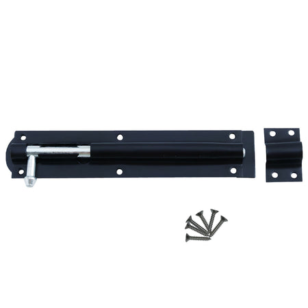 Garden Gate Shed Tower Bolt 6 Inch (150mm) Sliding Latch - Black