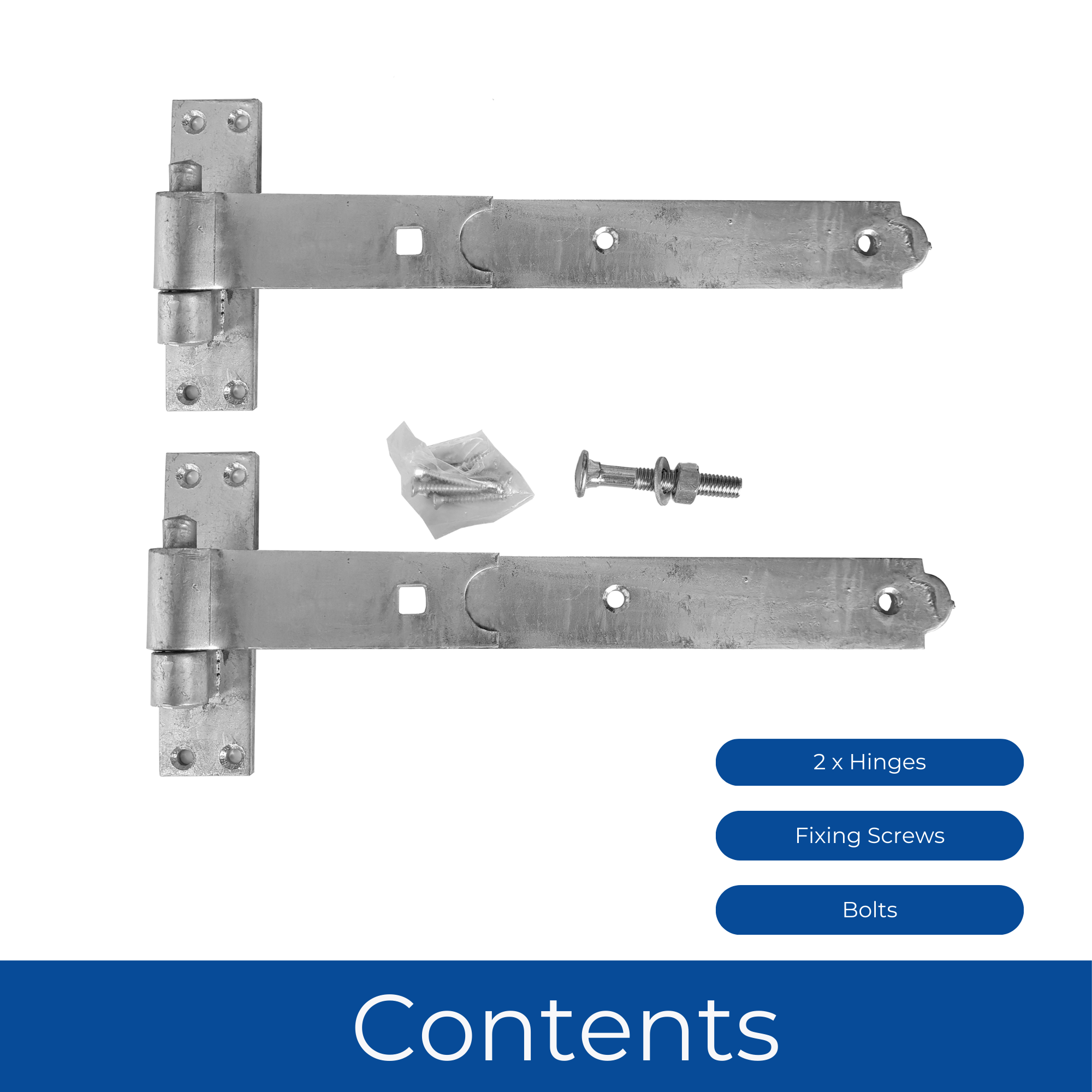 DIMENSIONS - 400mm (16 inch) heavy-duty T-hinges with galvanised finish, perfect for large gates and garden shed doors. Comes as a pair with all necessary fixings included.