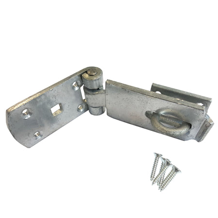 DIMENSIONS - 125mm (5 inch) heavy-duty swivel hasp and staple, perfect for securing gates, shed doors, and garden enclosures