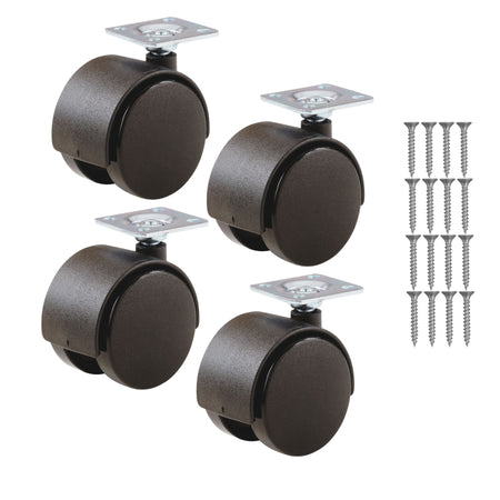 Hooded Swivel Castor Wheels 40mm Diameter, Black Plastic, 18kg Load - 4 Pack