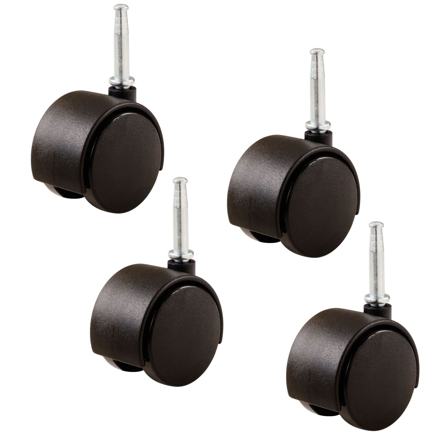 Hooded Swivel Castor Wheels 40mm Diameter, Black Plastic, Stem Fixing - 4 Pack