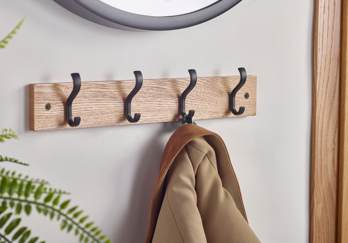 Coat Rack - 4 Basic Hooks Black on Ash