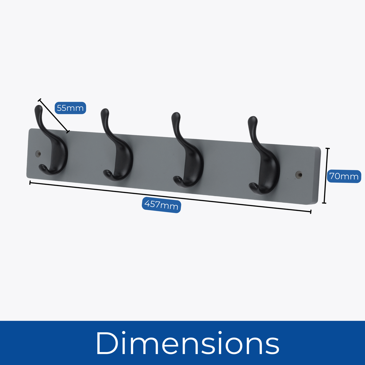 Grey Block Wooden Wall Mounted Coat Rack with Black Modern Double Hooks - 4 Hooks