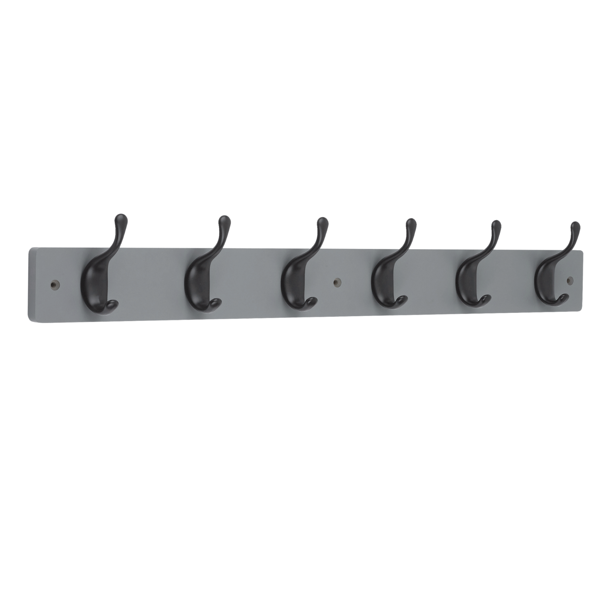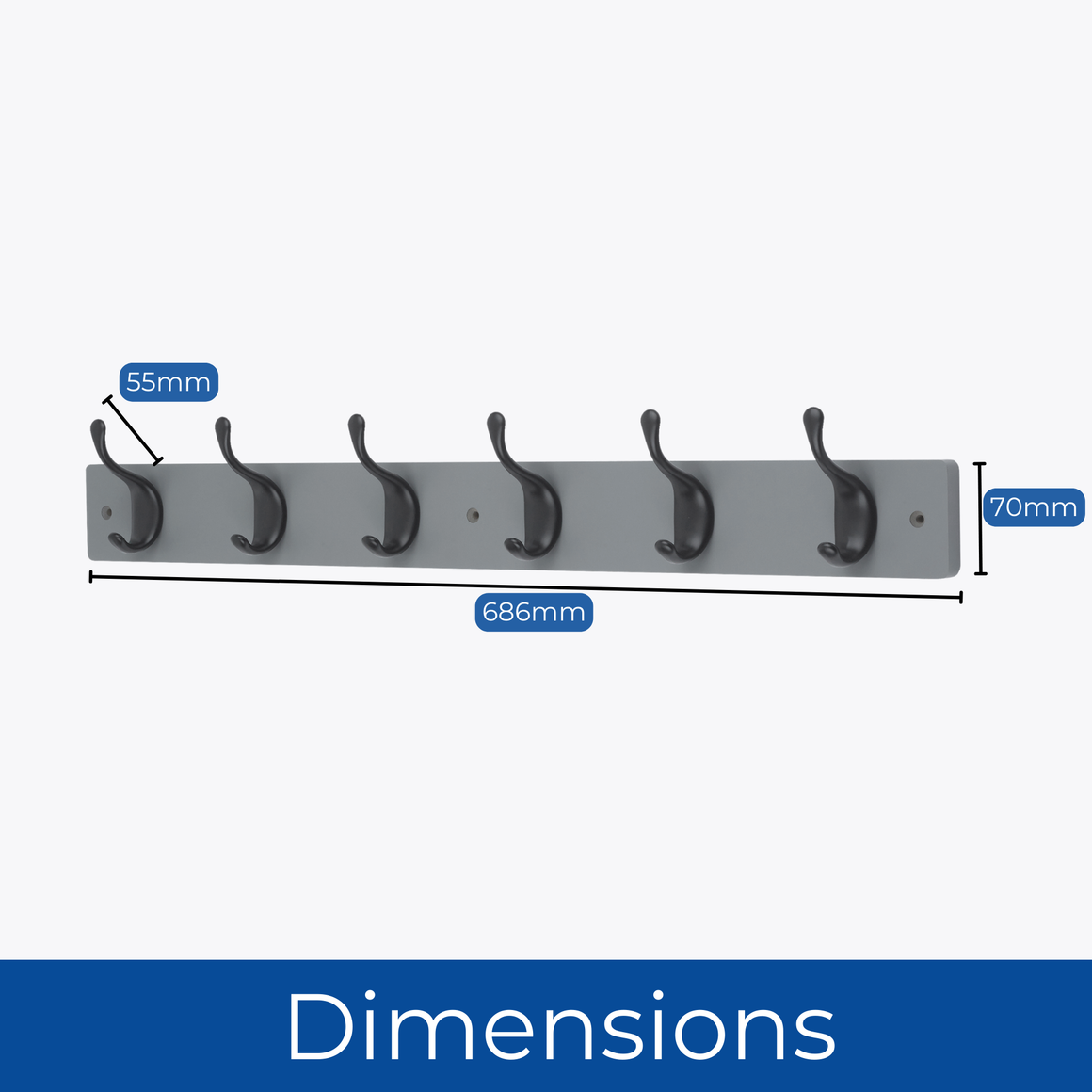 Grey Block Wooden Wall Mounted Coat Rack with Black Modern Double Hooks - 6 Hooks