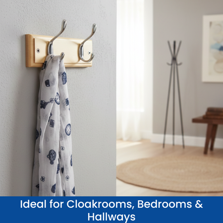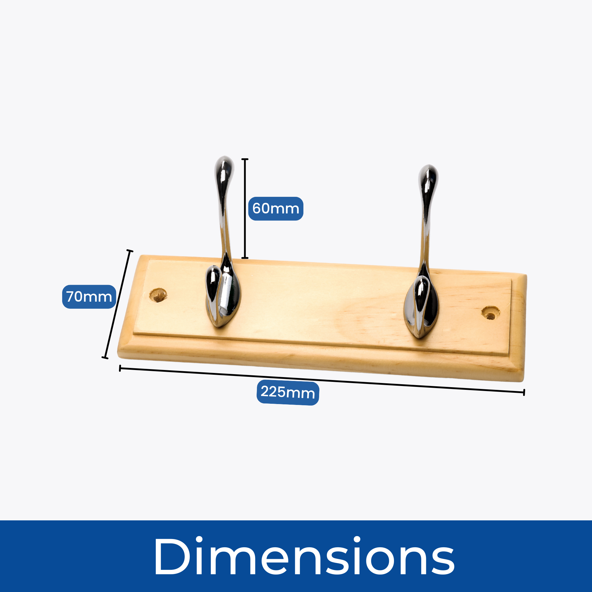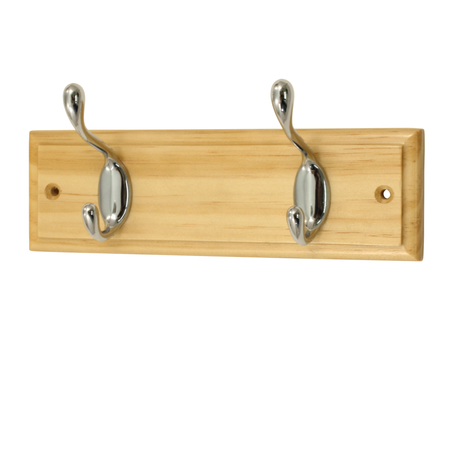 Pine Finish Wall Mounted Coat Rack with Basic Chrome Double Hooks - 2 Hooks