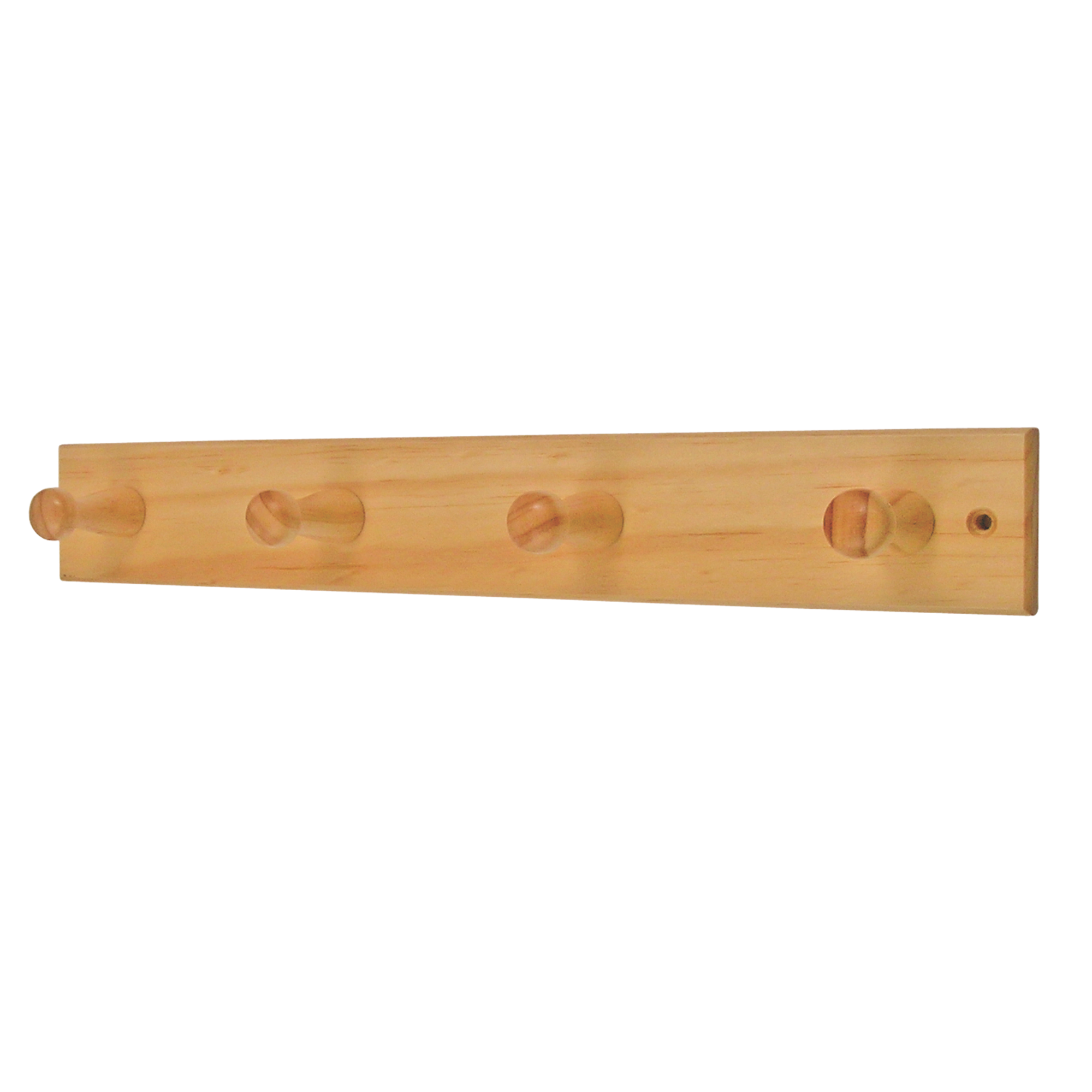 Wall-Mounted Wooden Coat Hook Rack 4 Round Hooks for Coats Jackets Hats & Bags