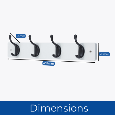 HEAVY-DUTY HOOKS – The double-tiered metal hooks can hold up to 3.4kg each, making it suitable for storing items such as a winter coat and a bag on the same hook without overcrowding.