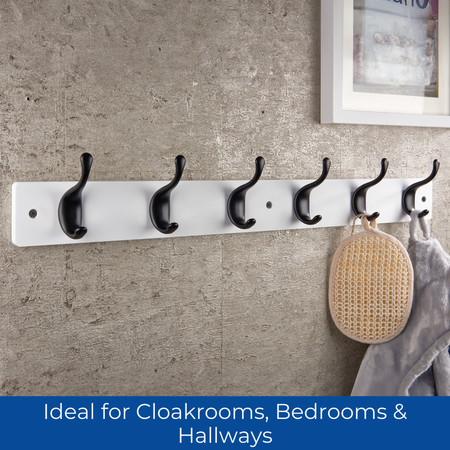 White Wooden Wall Mounted Coat Rack with Black Modern Double Hooks - 6 Hooks
