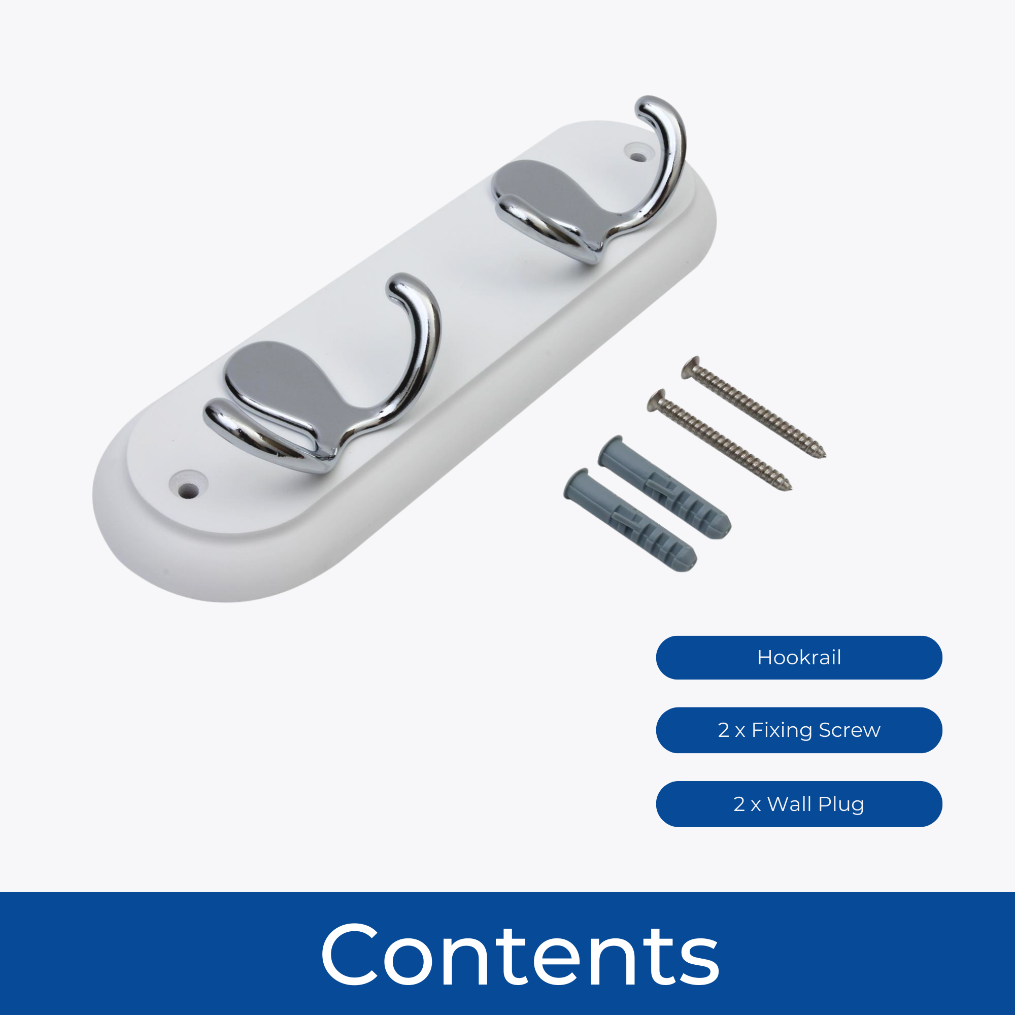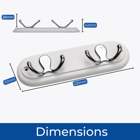 White Wall Mounted Coat Rack with Chrome Double Hooks - 2 Hooks