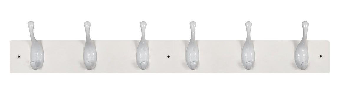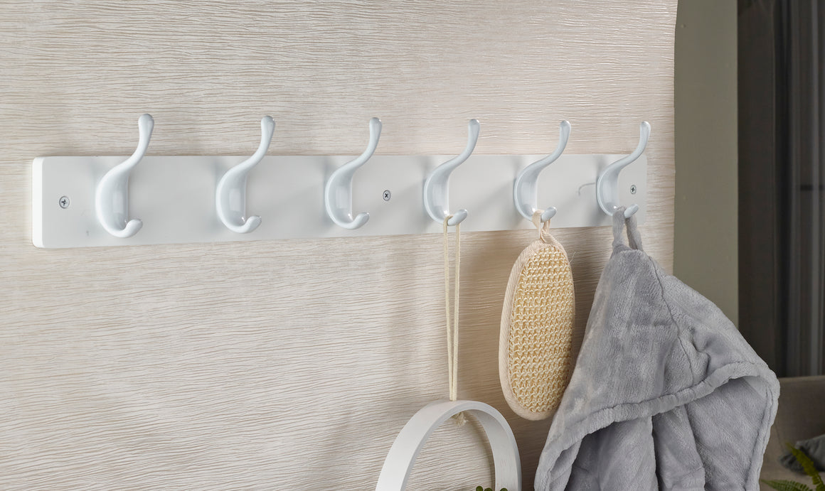 Coat Rack - White Block with 6 Modern Hooks