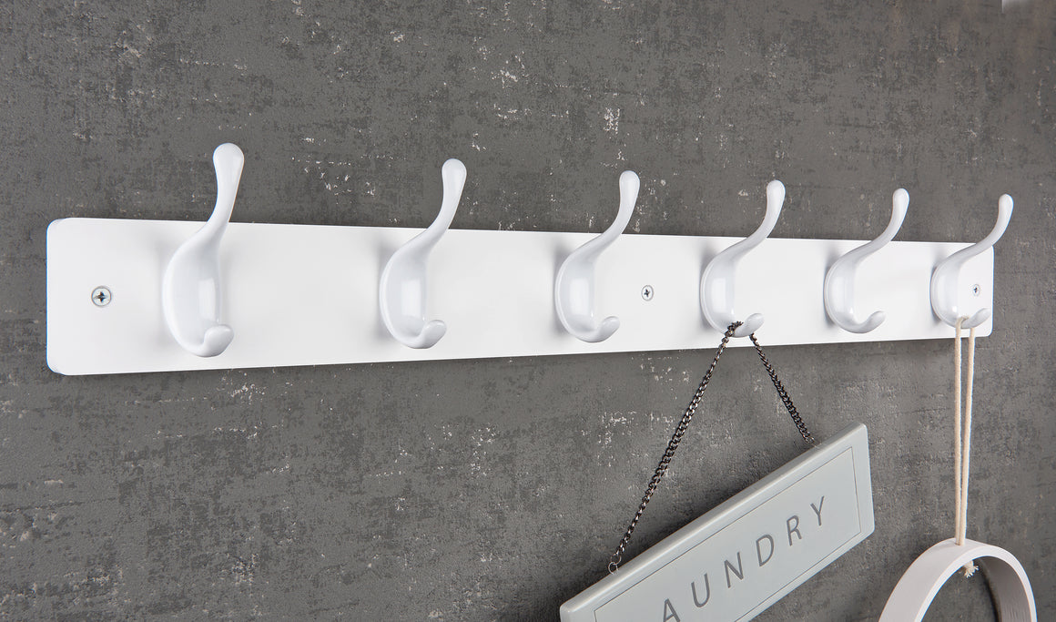 HEAVY-DUTY HOOKS - The double-tiered metal hooks can hold up to 3.4kg each, making it suitable for storing items such as a winter coat and a bag on the same hook without overcrowding.