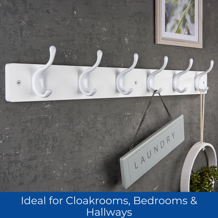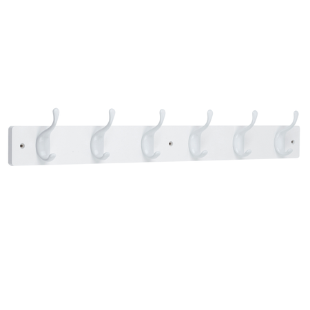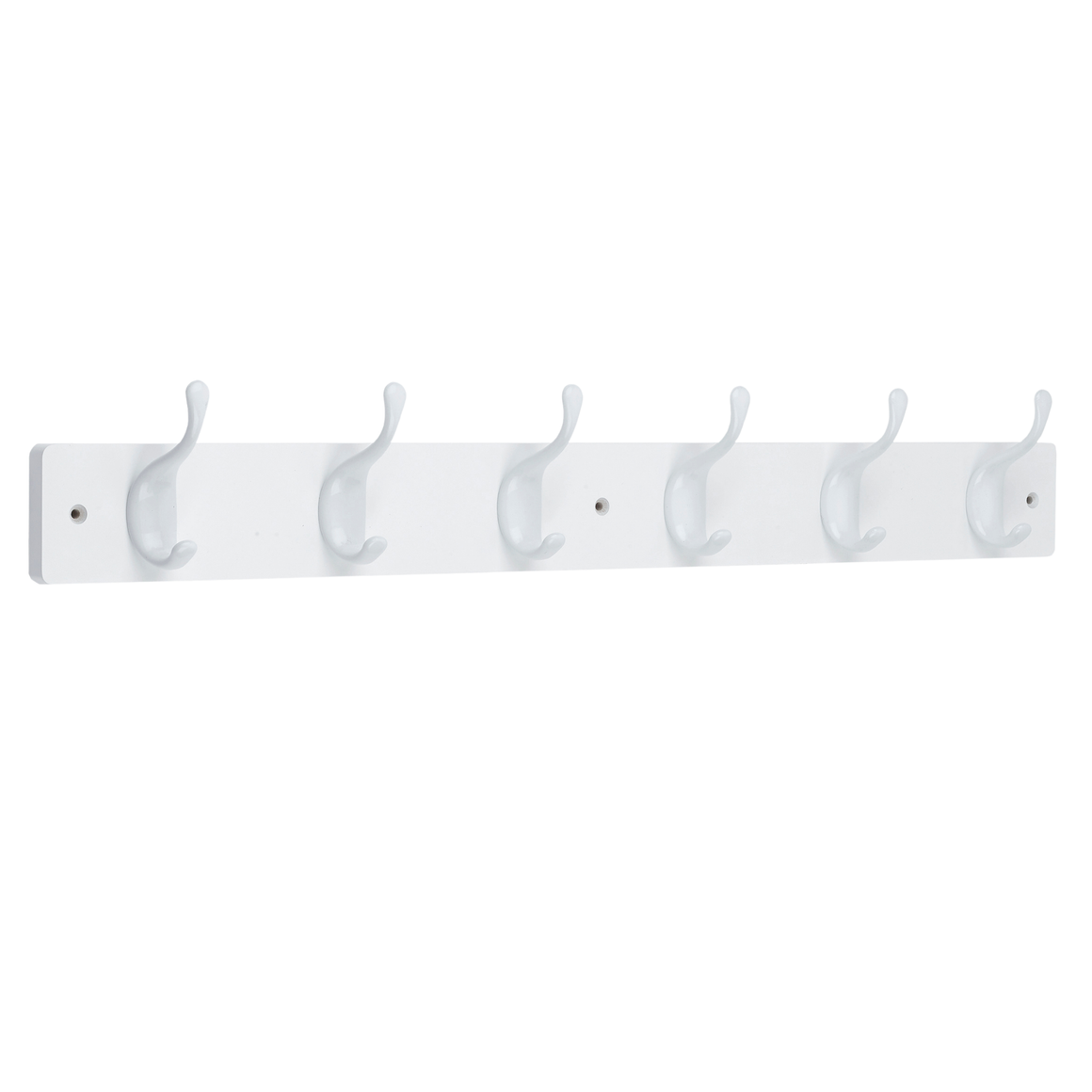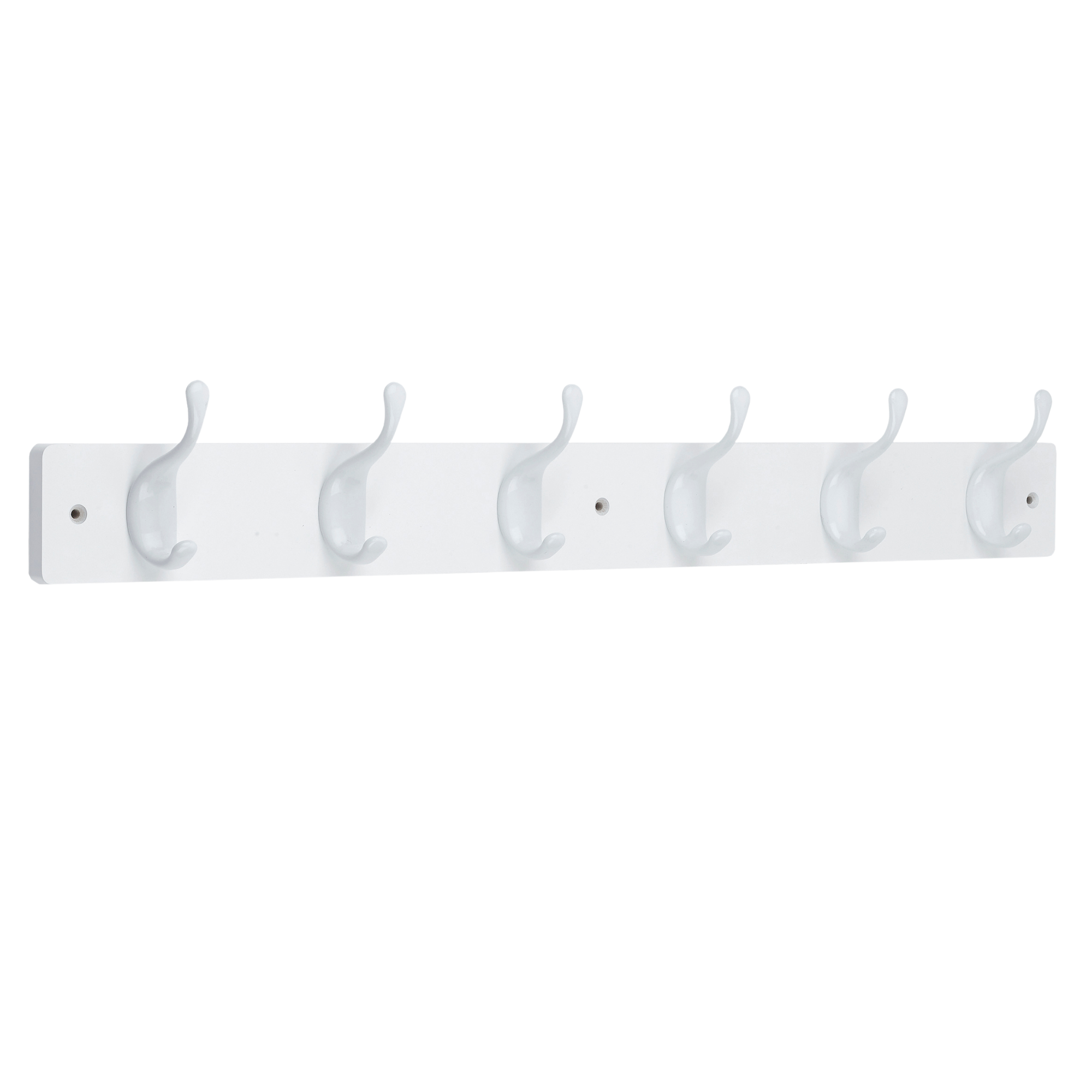 White Wooden Wall Mounted Coat Rack with White Modern Double Hooks - 6 Hooks