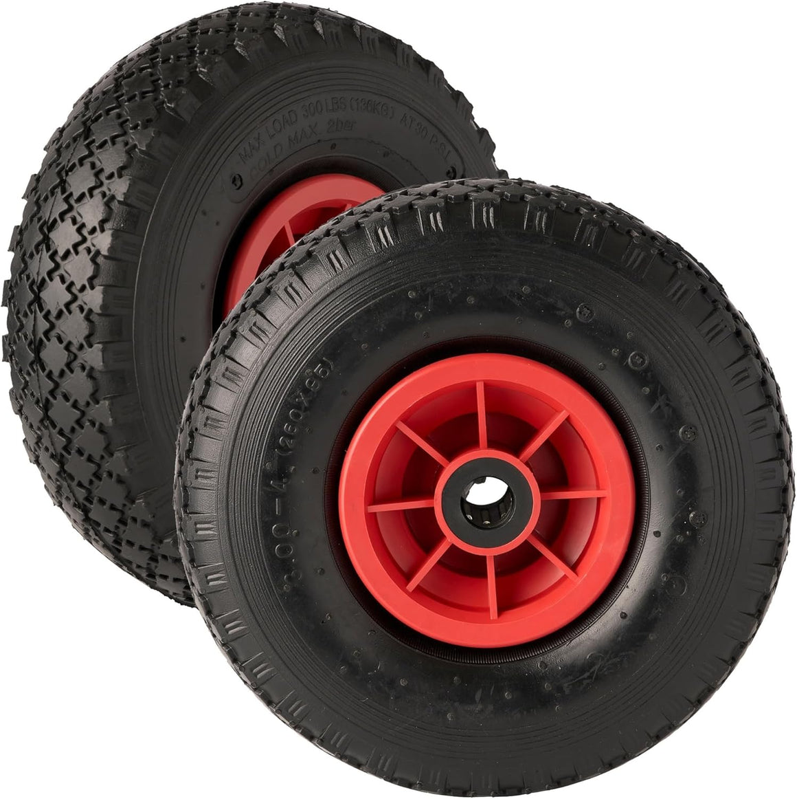 10" Pneumatic Tires, 3.00-4, Pack of 2, 25mm Bore, 272KG Capacity, Roller Bearings