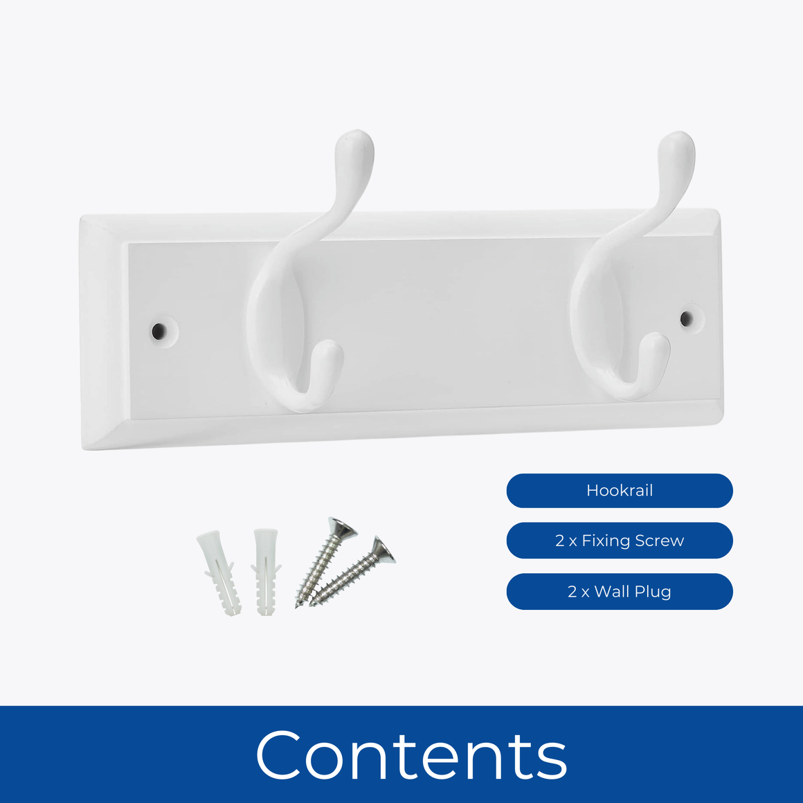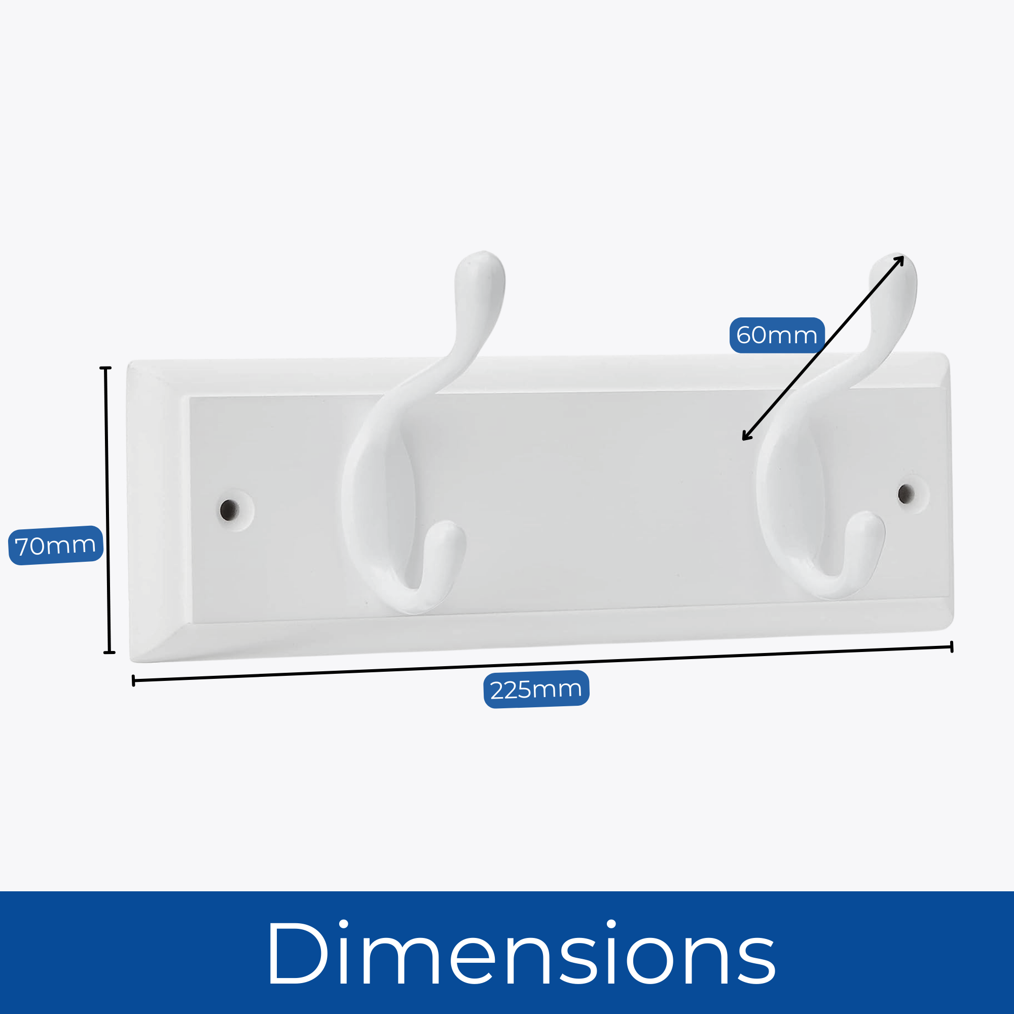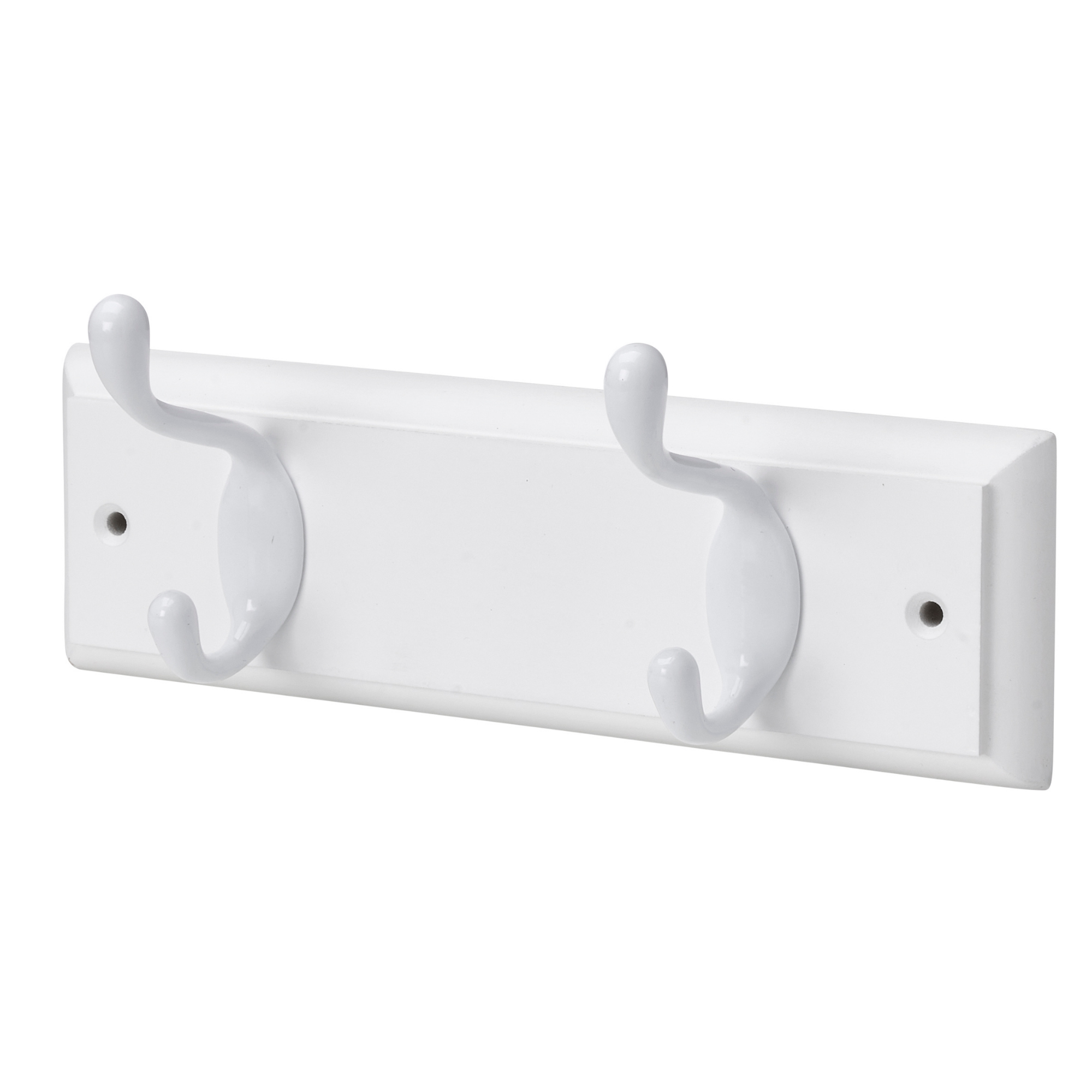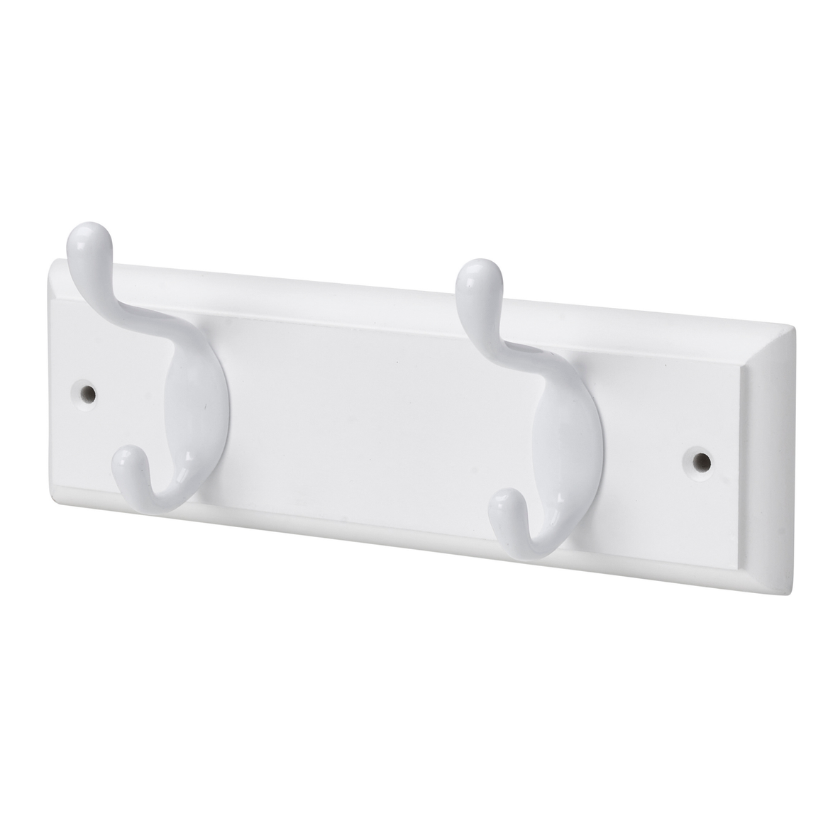 White Wooden Wall Mounted Coat Rack with Basic White Double Hooks - 2 Hooks