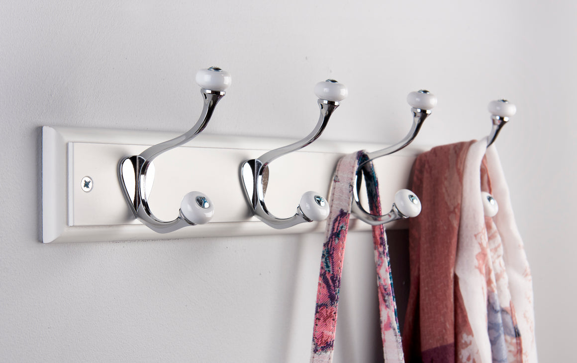 Keypak Coat rack -4 Cer. Tip Hooks on White
