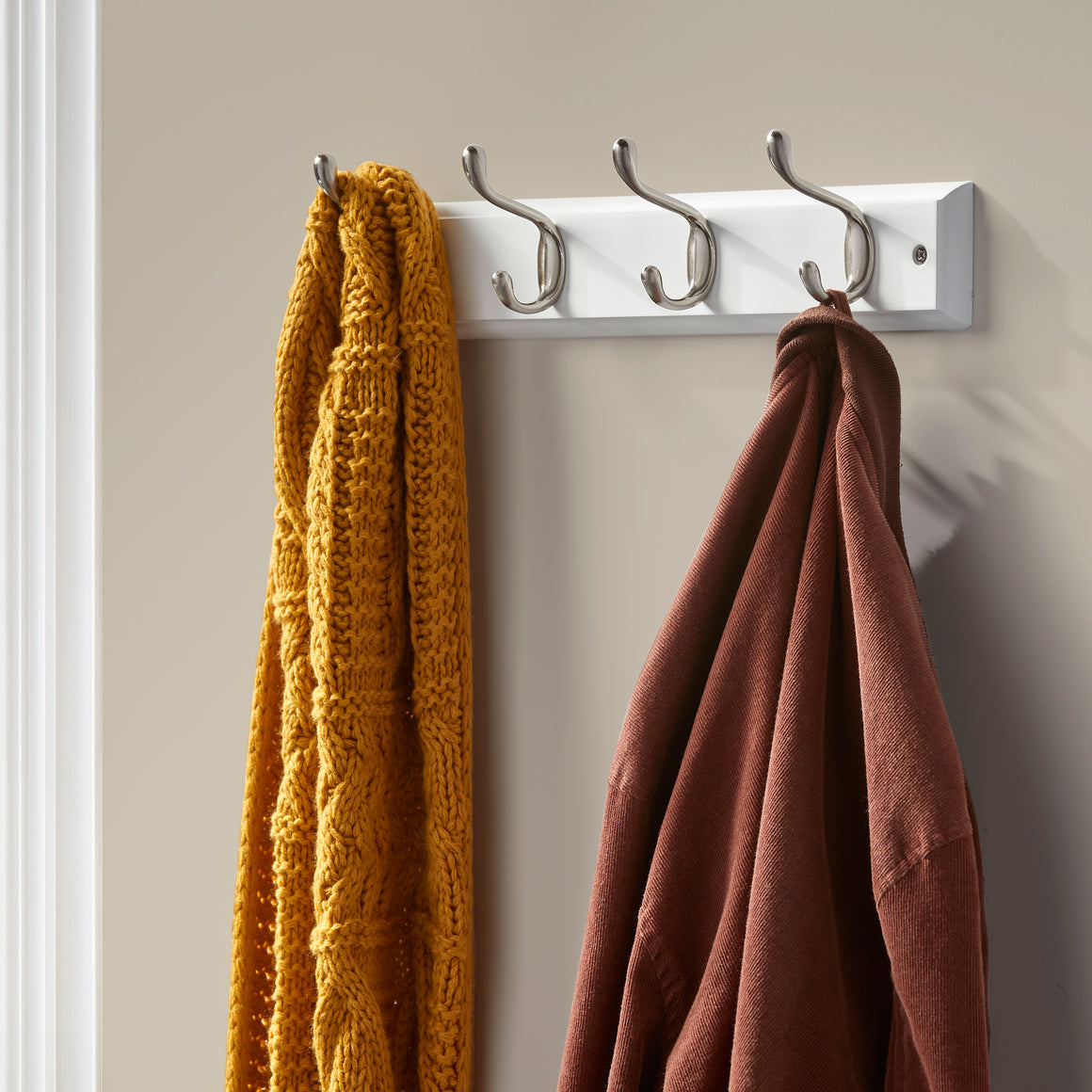 HEAVY-DUTY HOOKS - The double-tiered metal hooks can hold up to 3.4kg each, making it suitable for storing items such as a winter coat and a bag on the same hook without overcrowding.
