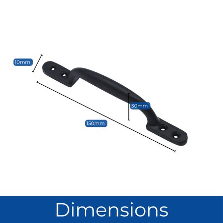 DIMENSIONS - 150mm (6 inch) black cast handle with robust construction for heavy-duty applications and superior durability