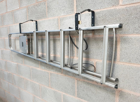 VERSATILE - For the safe, convenient and secure storage of most 2 or 3 section ladders, it can also be used to securily store your power tools and bikes with a padlock