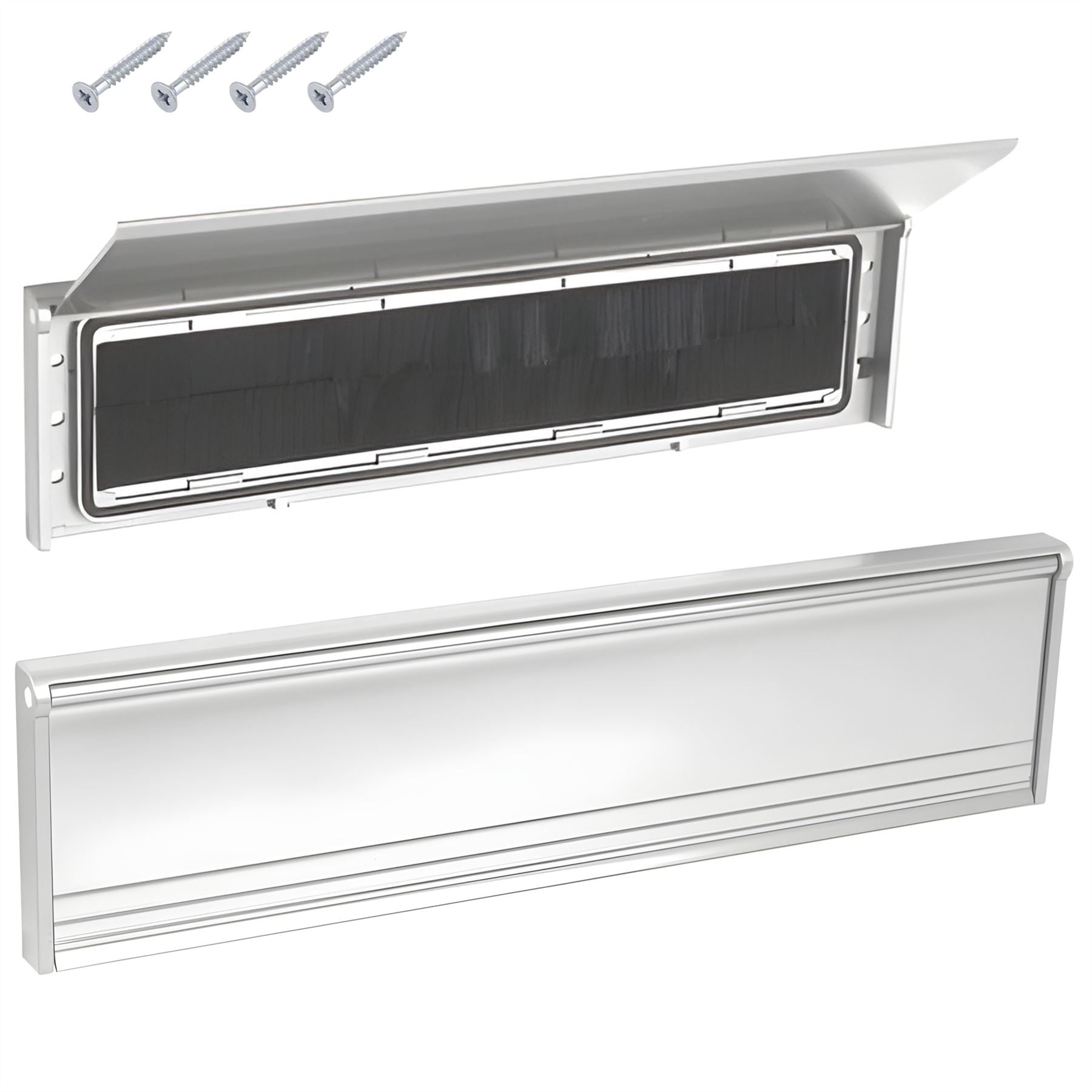Letterplate Cover 12 inch Door Letterbox with Draught Excluder - Silver