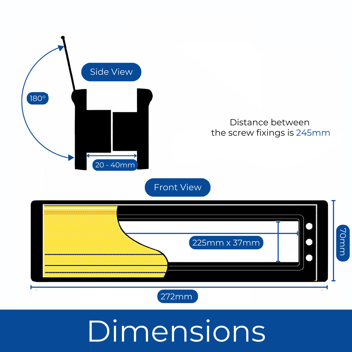 DIMENSIONS – The letter box overall size is 272mm x 70mm and the internal dimension of the sleeve is 221mm x 37mm.