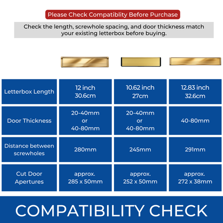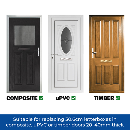 ADJUSTABLE SLEEVE – The telescopic design means the letter box can be adjusted to fit doors between 20mm to 39mm in thickness. Our letter box will fit most uPVC, Composite & Timber doors.