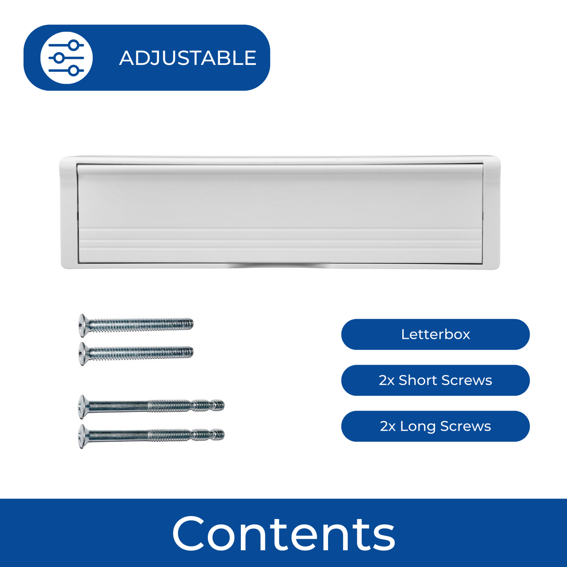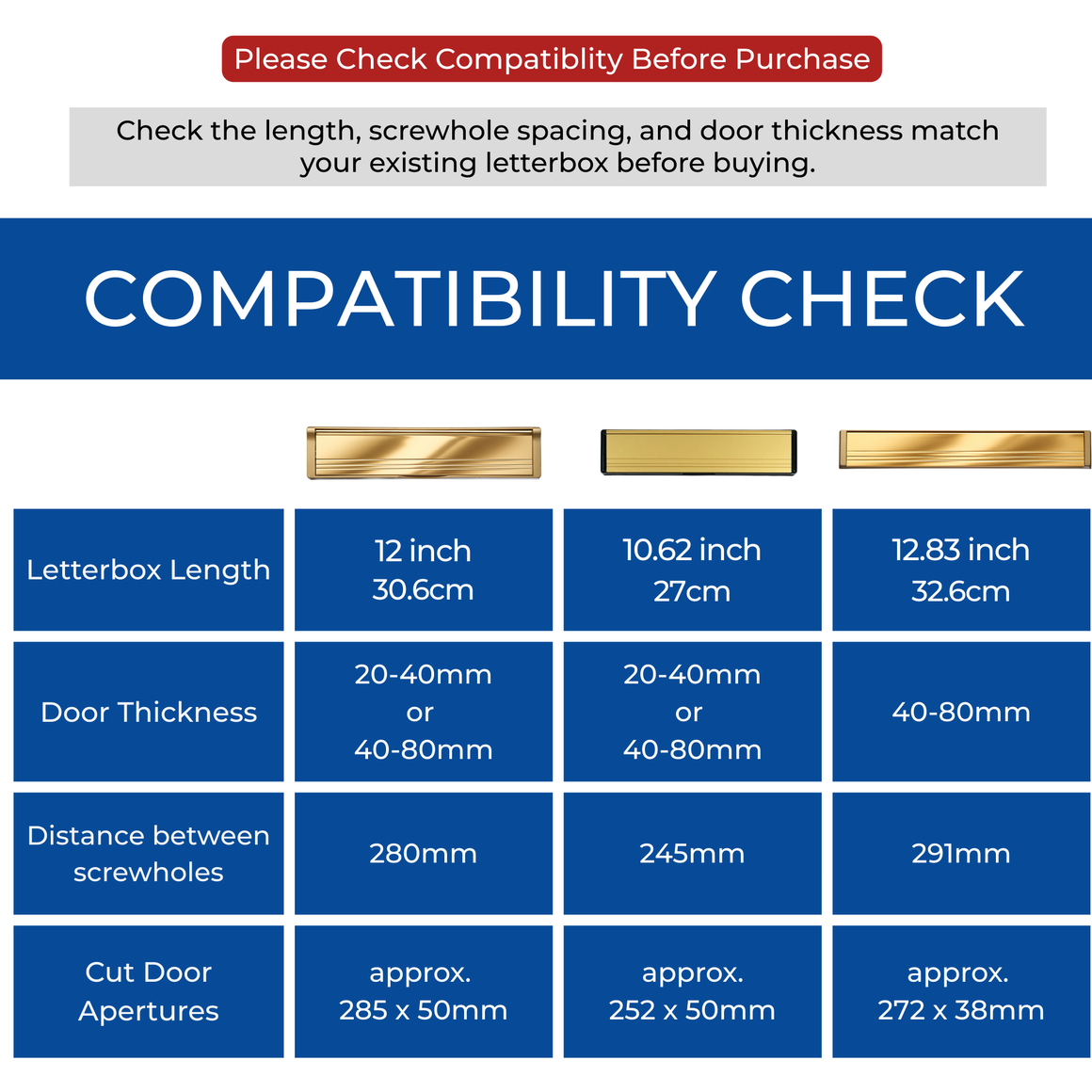 ADJUSTABLE SLEEVE – The telescopic design means the letter box can be adjusted to fit doors between 20mm to 39mm in thickness. Our letter box will fit most uPVC, Composite & Timber doors.