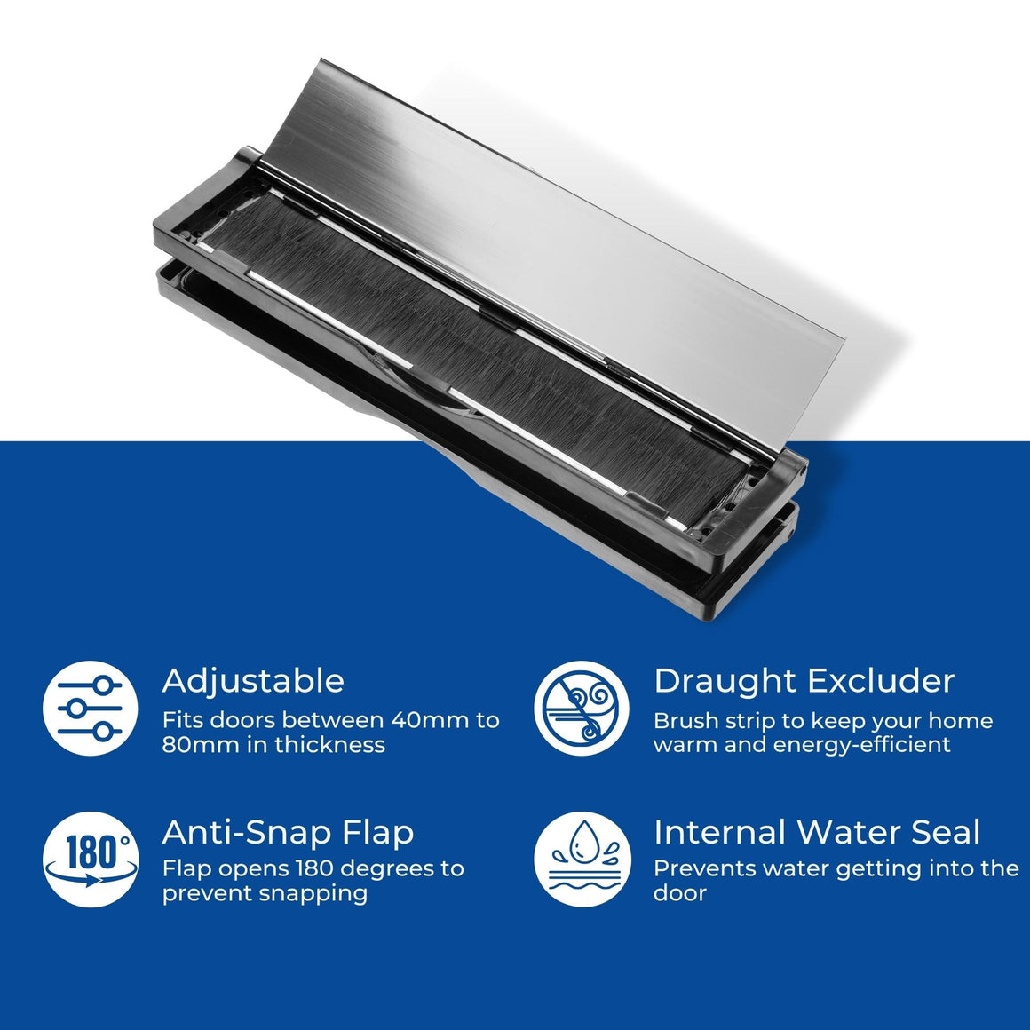 The design combines integrated brush seals with a water barrier to keep draughts and moisture at bay, while the durable anti-snap flap opens a full 180 degrees for effortless mail delivery and consistent performance.