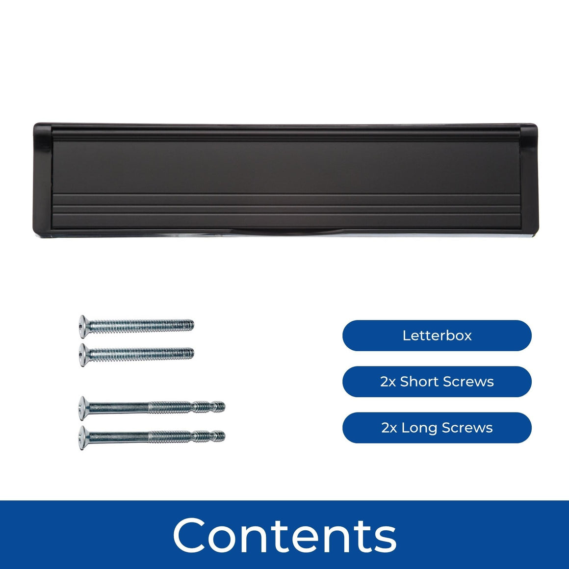 Black Door Letter Box 12 inch - For 40-80mm Depth