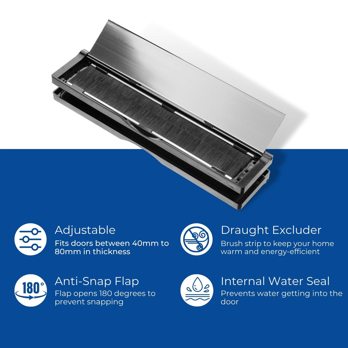 ADJUSTABLE SLEEVE - The telescopic design means the letter box can be adjusted to fit doors between 40mm to 80mm in thickness. Our letter box will fit most uPVC, Composite & Timber doors.