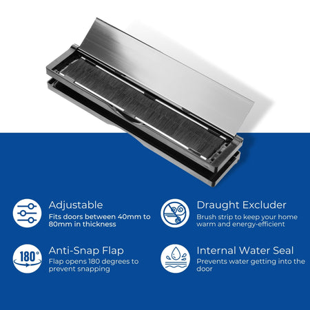 The design combines integrated brush seals with a reliable water barrier to keep your home cozy and dry in any weather, while the durable anti-snap flap opens a full 180 degrees for smooth operation and reduced wear over time.