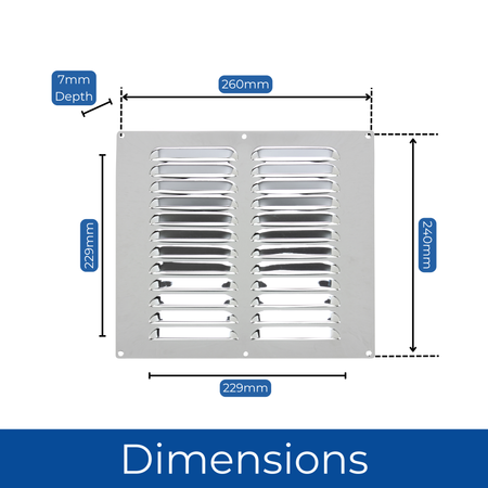 Chrome Finish Louvred Stainless Steel Vent - 9x9 Inch