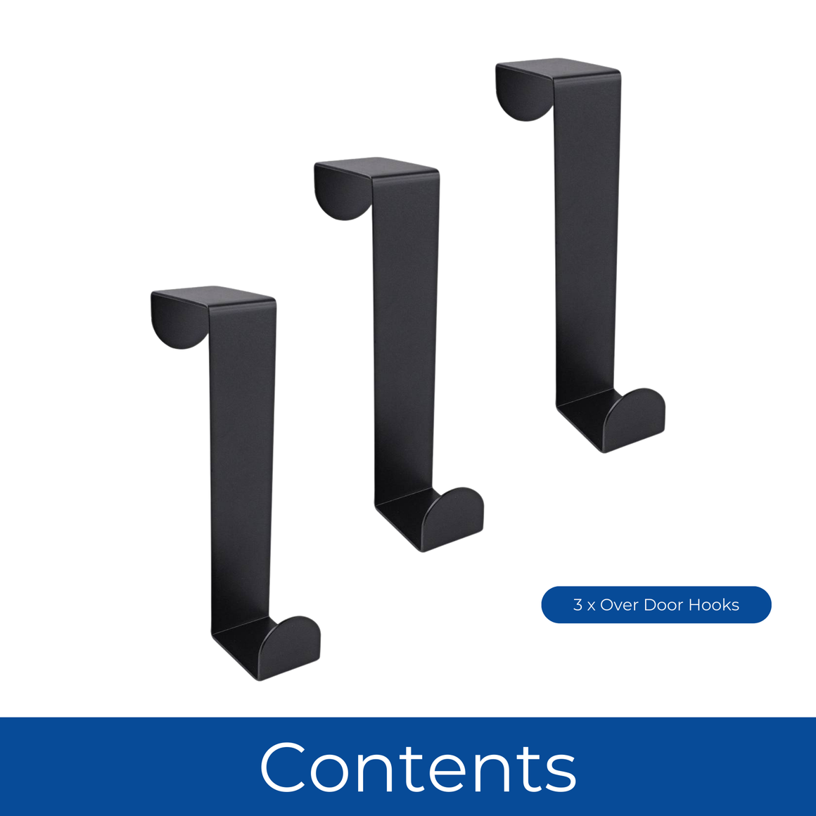 Metal Over Door Hooks 3 Pack Black - Fits Doors Up To 40mm, For Thick Coats Jackets