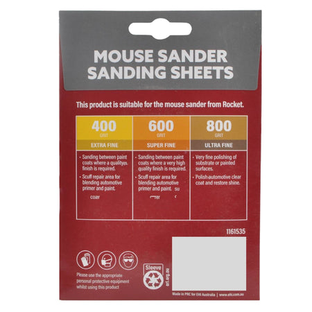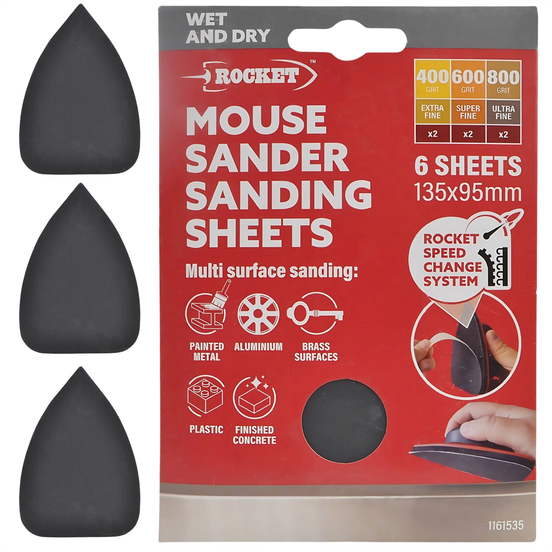 Mouse Sanding Sheets 6 Pack 135mm x 95mm - Grit Pads for Wood, Paint, Metal