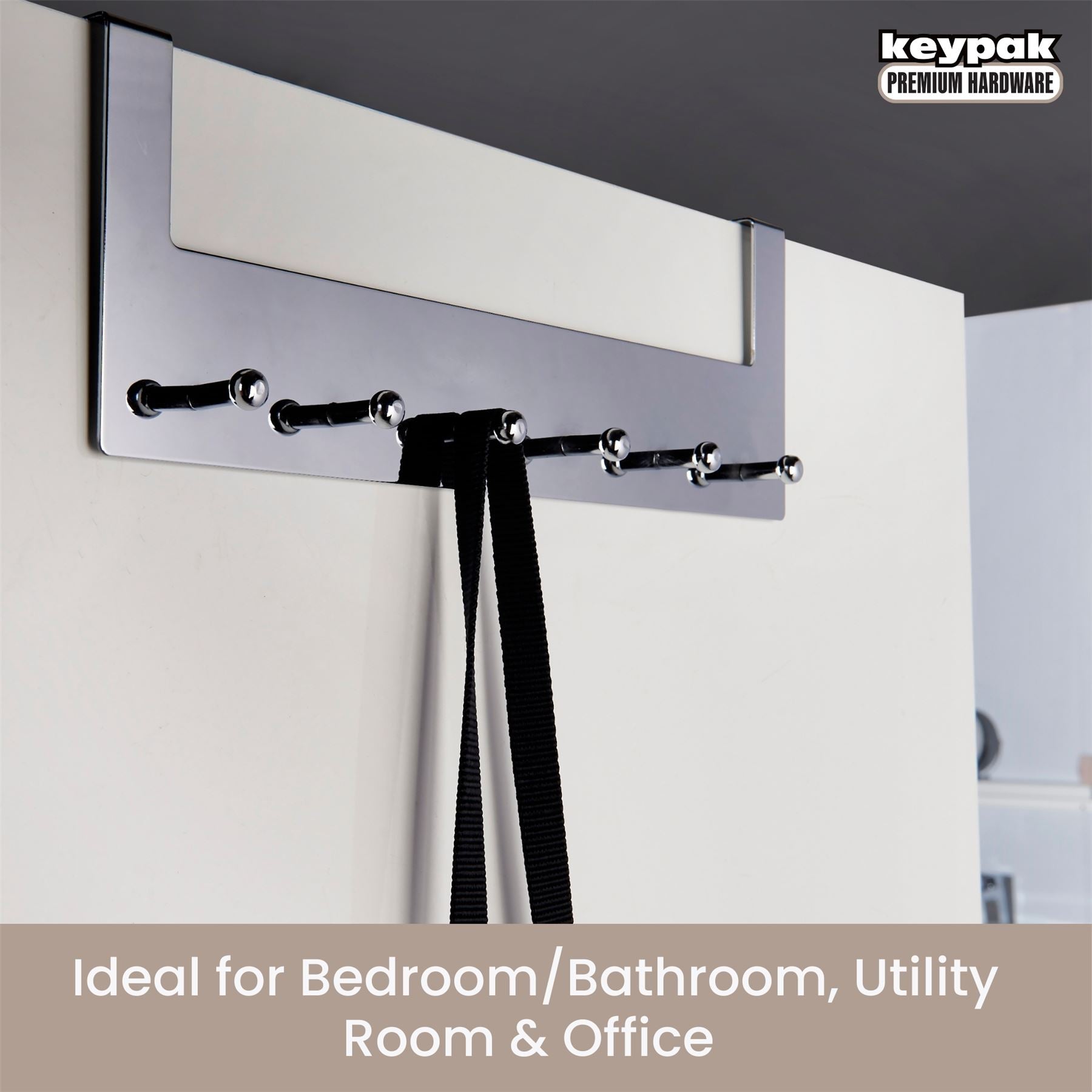The Keypak Stainless Steel Over-the-Door Hook Rack is a practical and stylish solution for creating extra storage in your home. Designed to fit standard doors, this space-saving organiser is perfect for hanging coats, towels, bags, robes, and more—without the need for drilling or permanent fixings. Crafted from high-quality stainless steel with a polished finish, this modern hook rack complements any interior while offering durability and rust resistance. Whether used in the bedroom, bathroom, kitchen, or hallway, it provides an effortless way to keep your space neat and clutter-free.