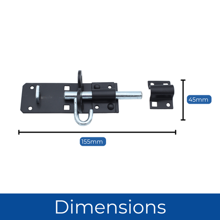 DIMENSIONS - 100mm (4-inch) heavy-duty sliding bolt lock, designed for securing gates, doors, sheds, and other outdoor fixtures. Perfect for both residential and commercial applications, offering durability and reliable security.