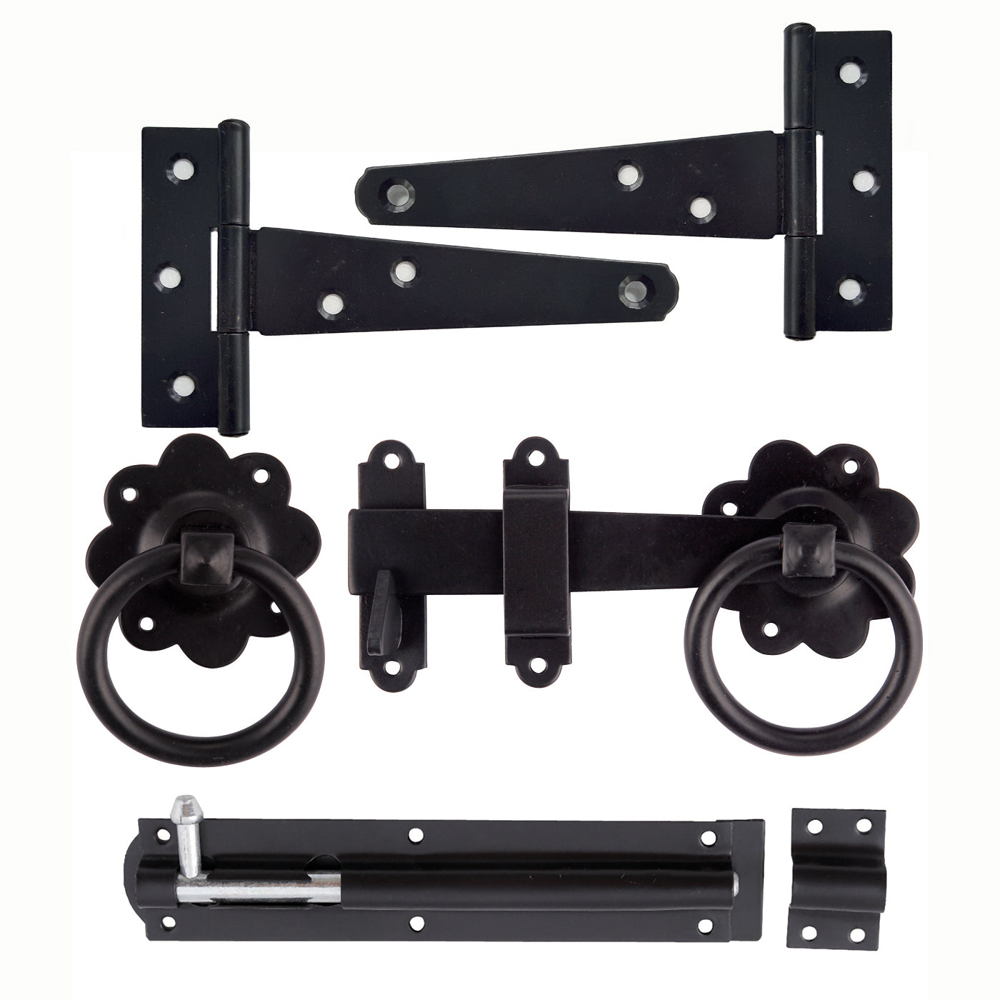 Ring Gate Latch, Bolt & Hinge Kit Black PK1