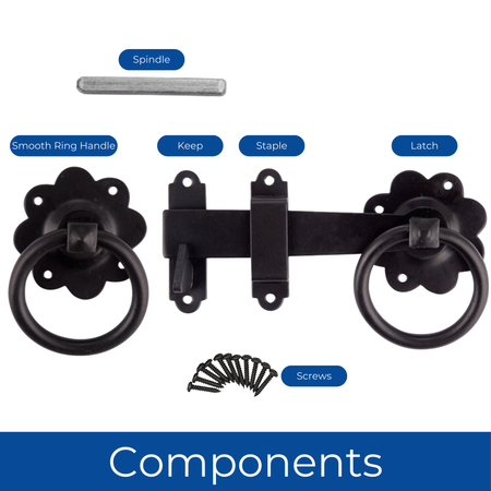 Ring Gate Latch Heavy Duty Smooth 152mm (6 inch) - Black Powder Coated