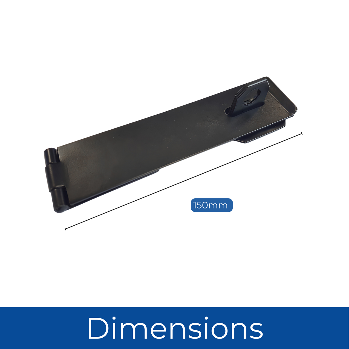 DIMENSIONS - 150mm (6 inch) heavy-duty hasp and staple made from robust black-finished metal for enhanced security and durability