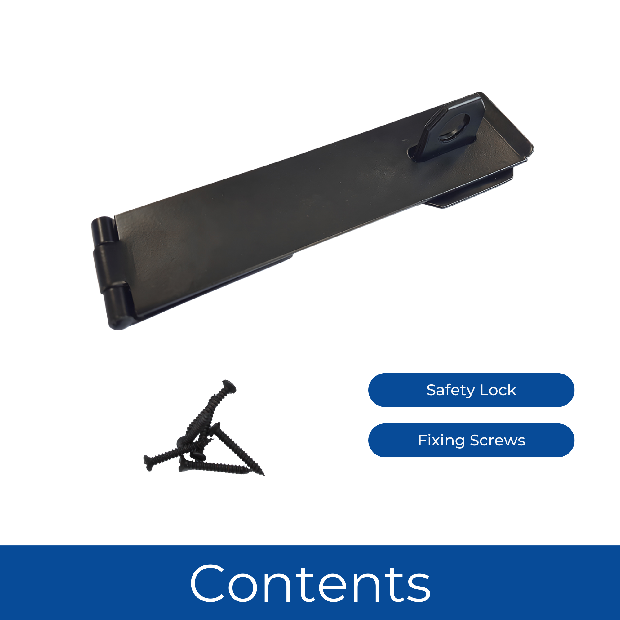 Safety Hasp & Staple 6 Inch (150mm) Gate, Shed & Cabinet Door Lock - Black